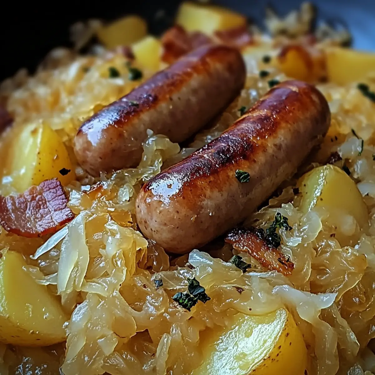 Authentic German Sauerkraut & Bratwurst with Bacon Onion Potatoes Recipe FAQs