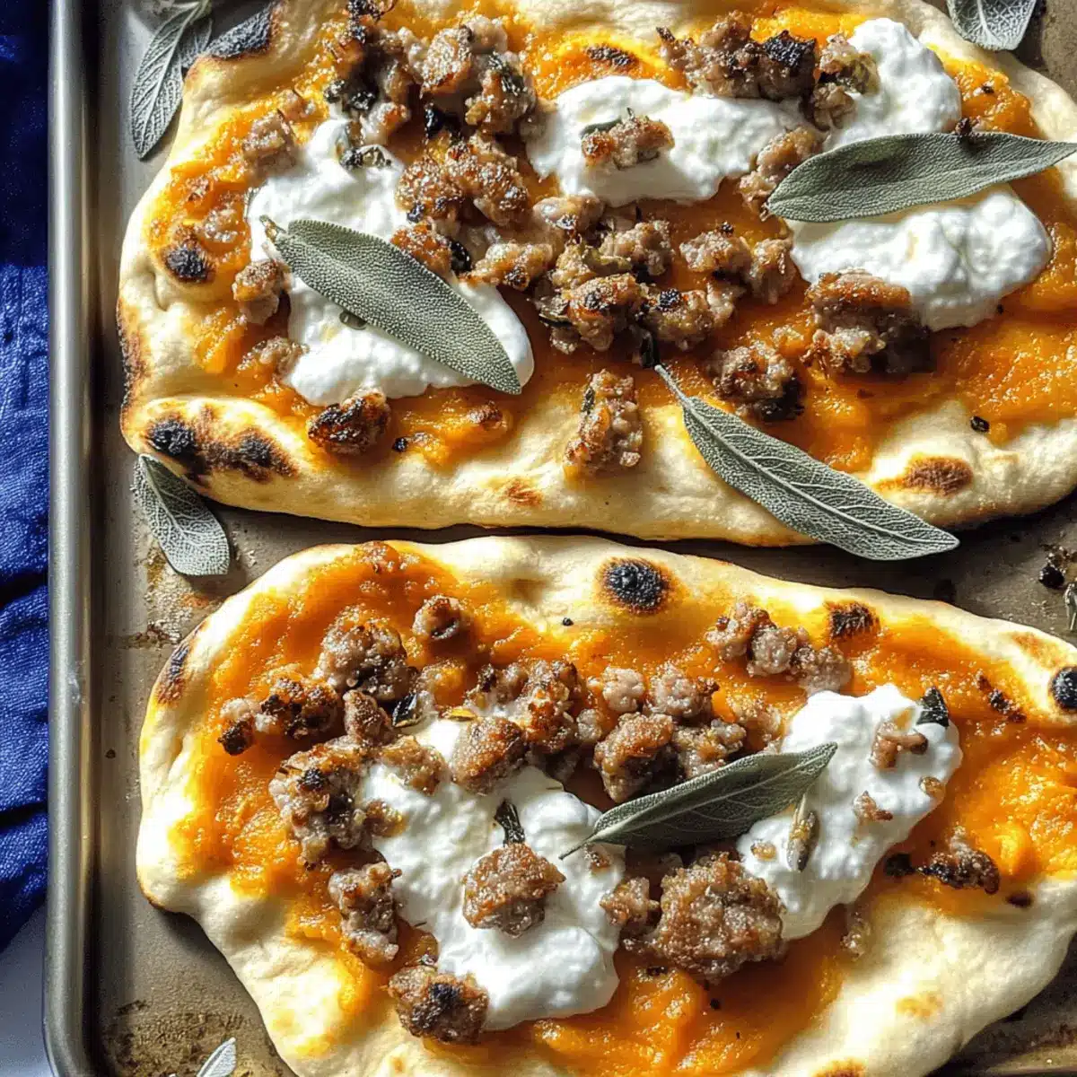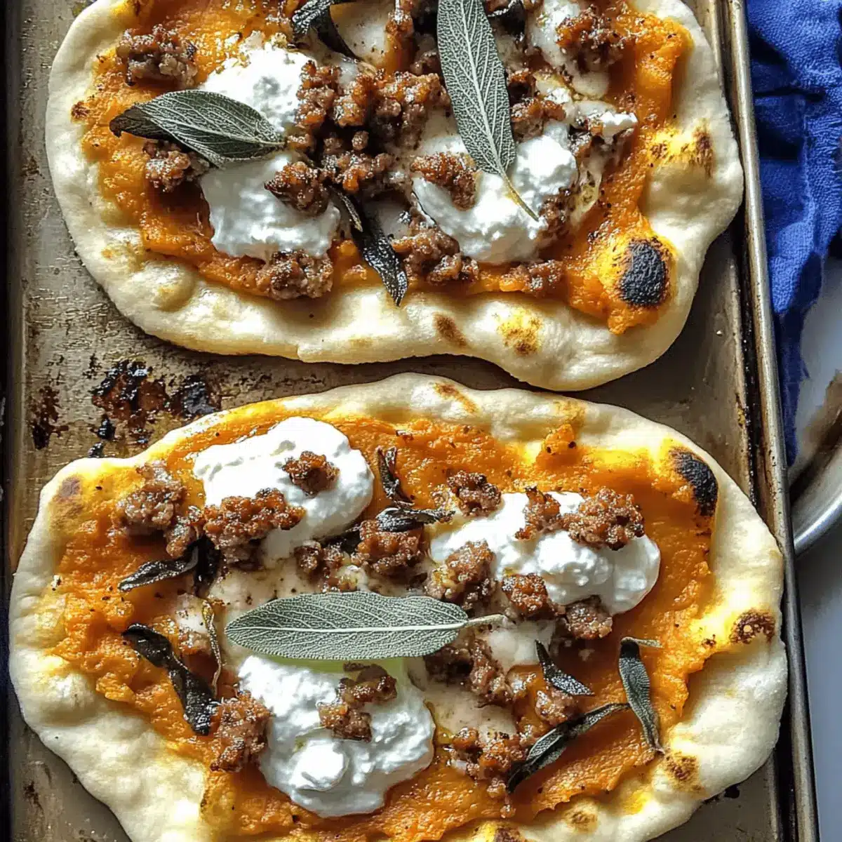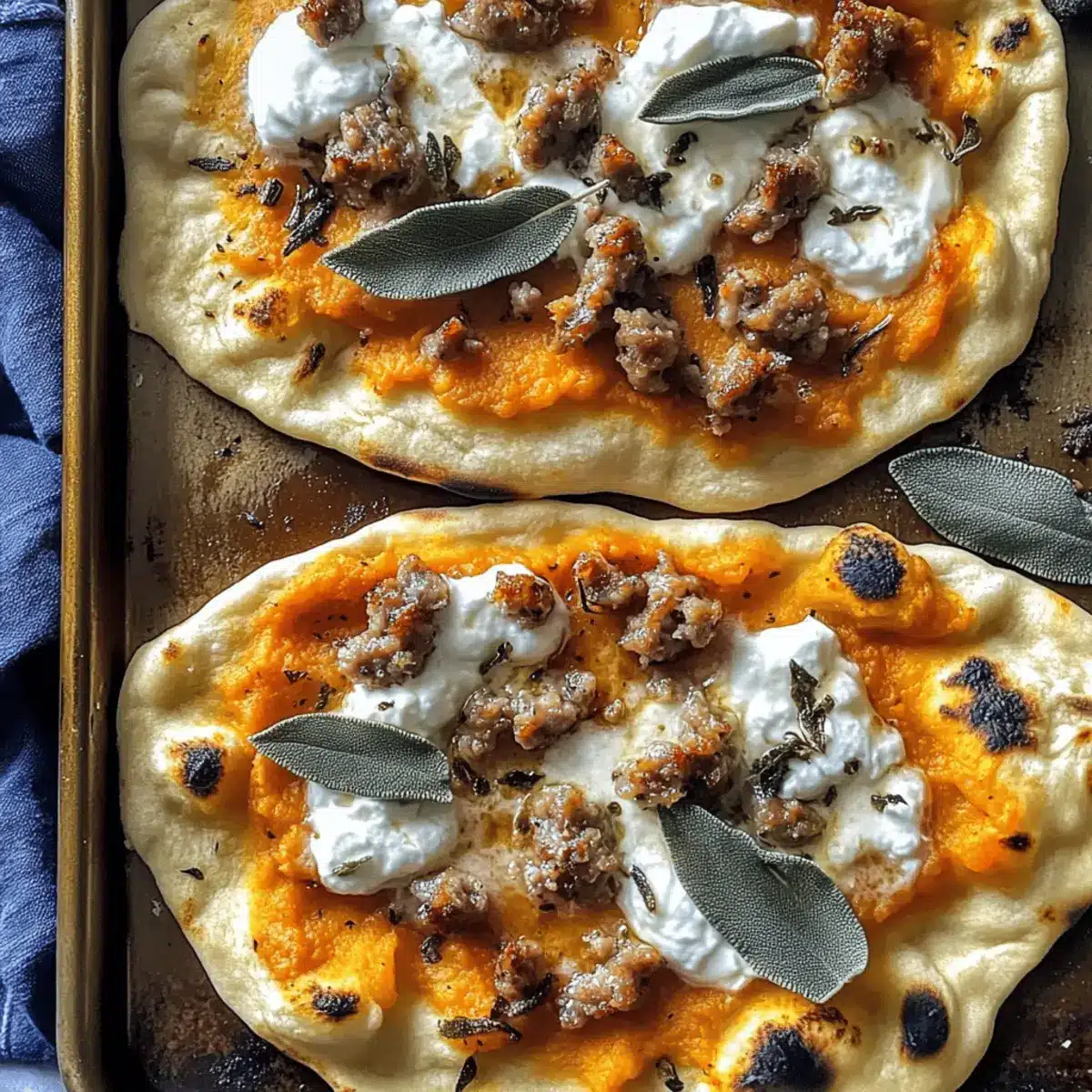 Before baking, add fresh sage leaves atop each naan to infuse a fragrant aroma while cooking. Drizzle a little more olive oil over the pizzas to enhance the flavors as they bake. This extra touch will help achieve that ultimate blend of comforting warmth and autumnal flair that makes the dish irresistible.