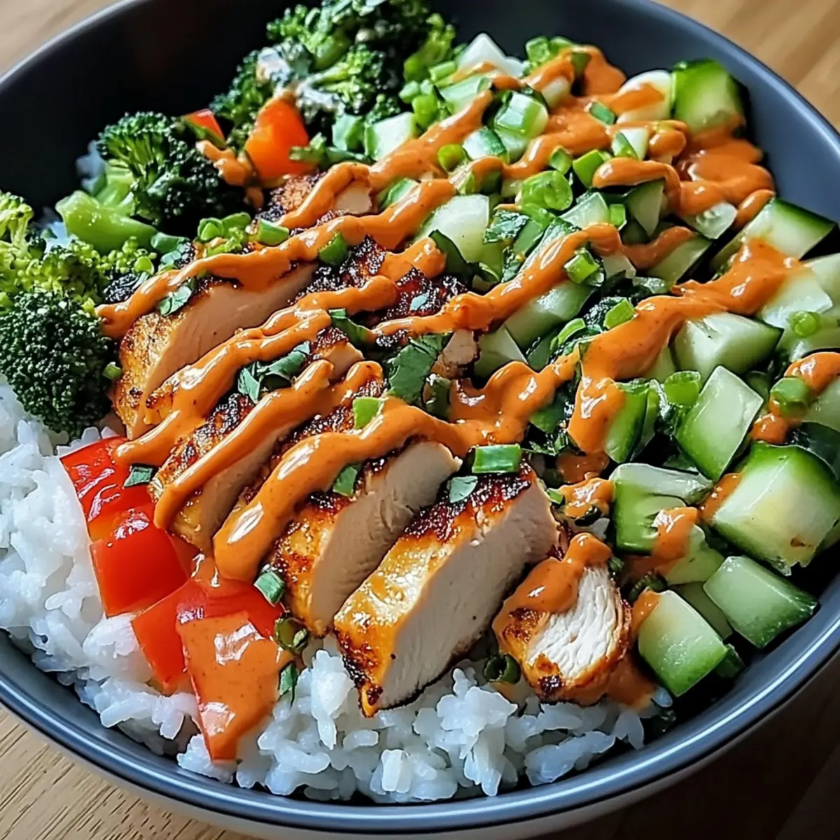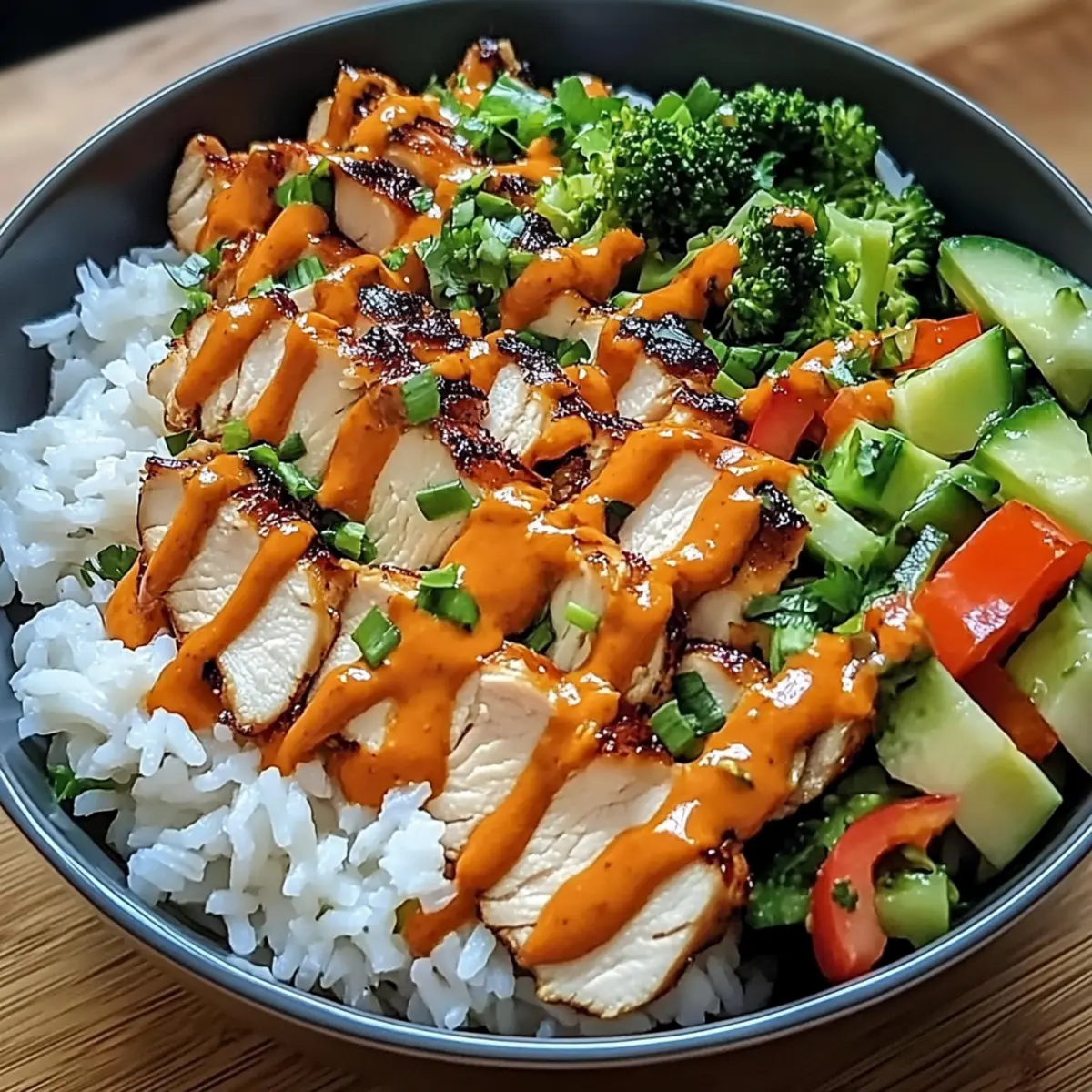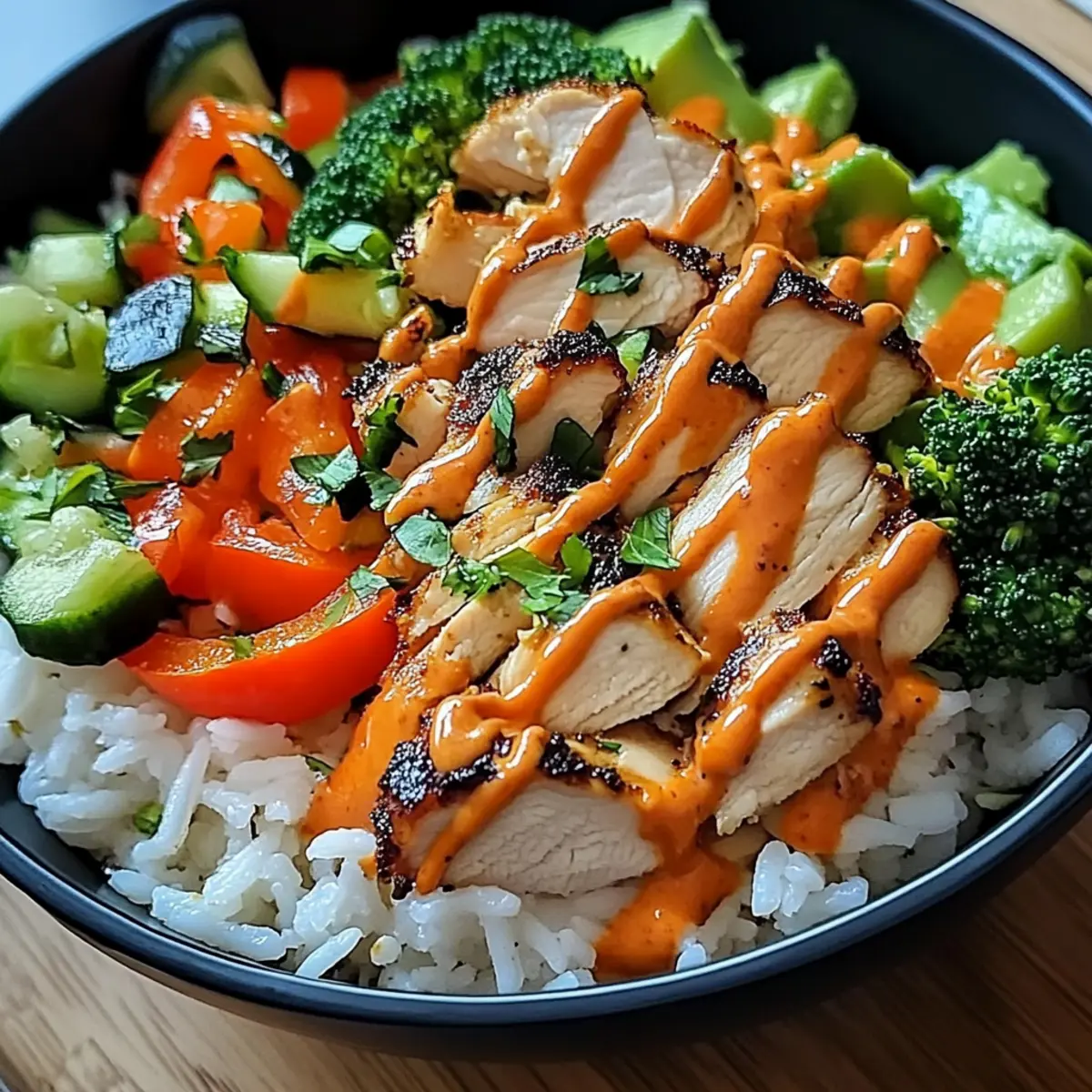 - Assemble the bowl with rice, sautéed chicken, and vegetables. Drizzle Bang Bang sauce generously over the top.