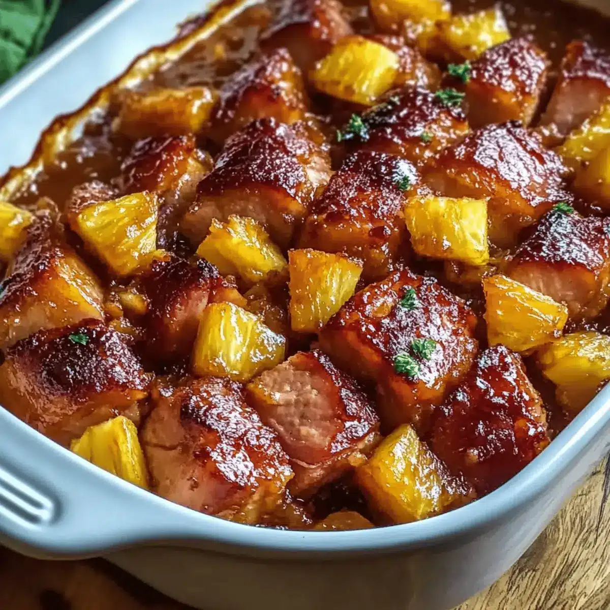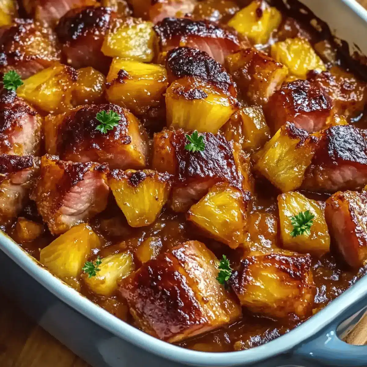 Even Coating: Ensure each piece of ham and pineapple is evenly coated with glaze for balanced flavor throughout. A well-coated dish enhances your dining experience.