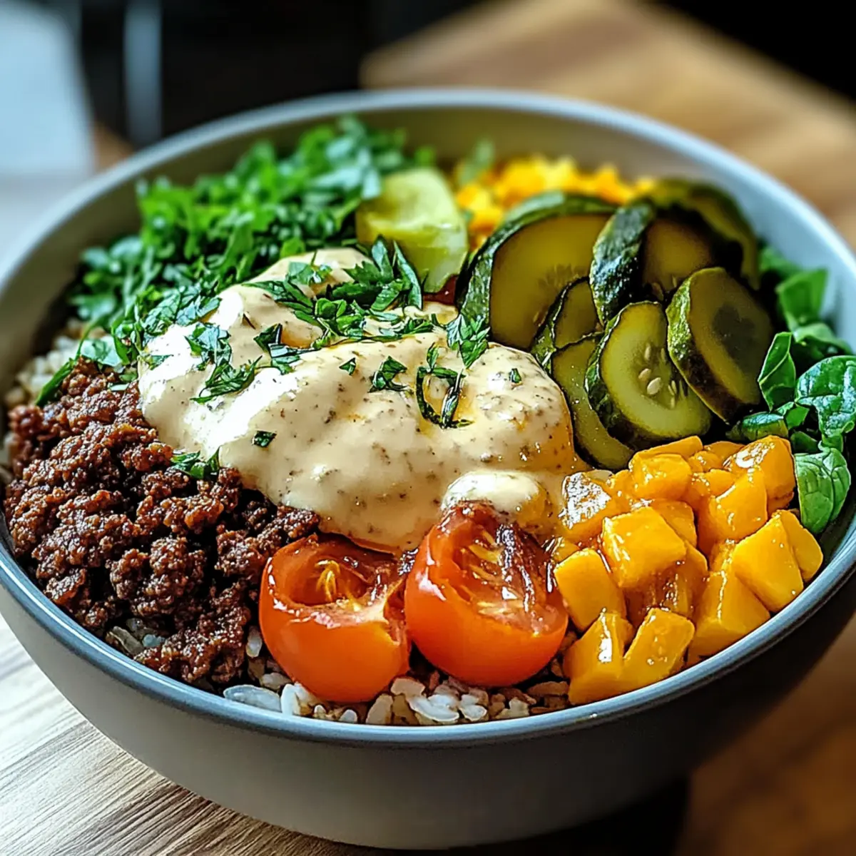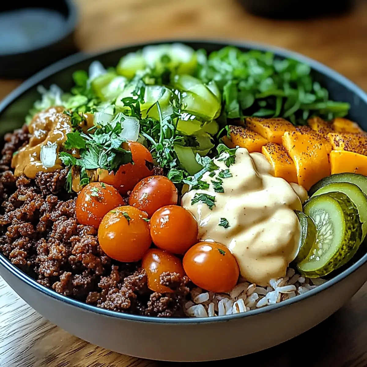 Customization is key: Tailor your Burger Bowls to fit any taste by experimenting with proteins, from classic ground beef to lean turkey or even plant-based options.