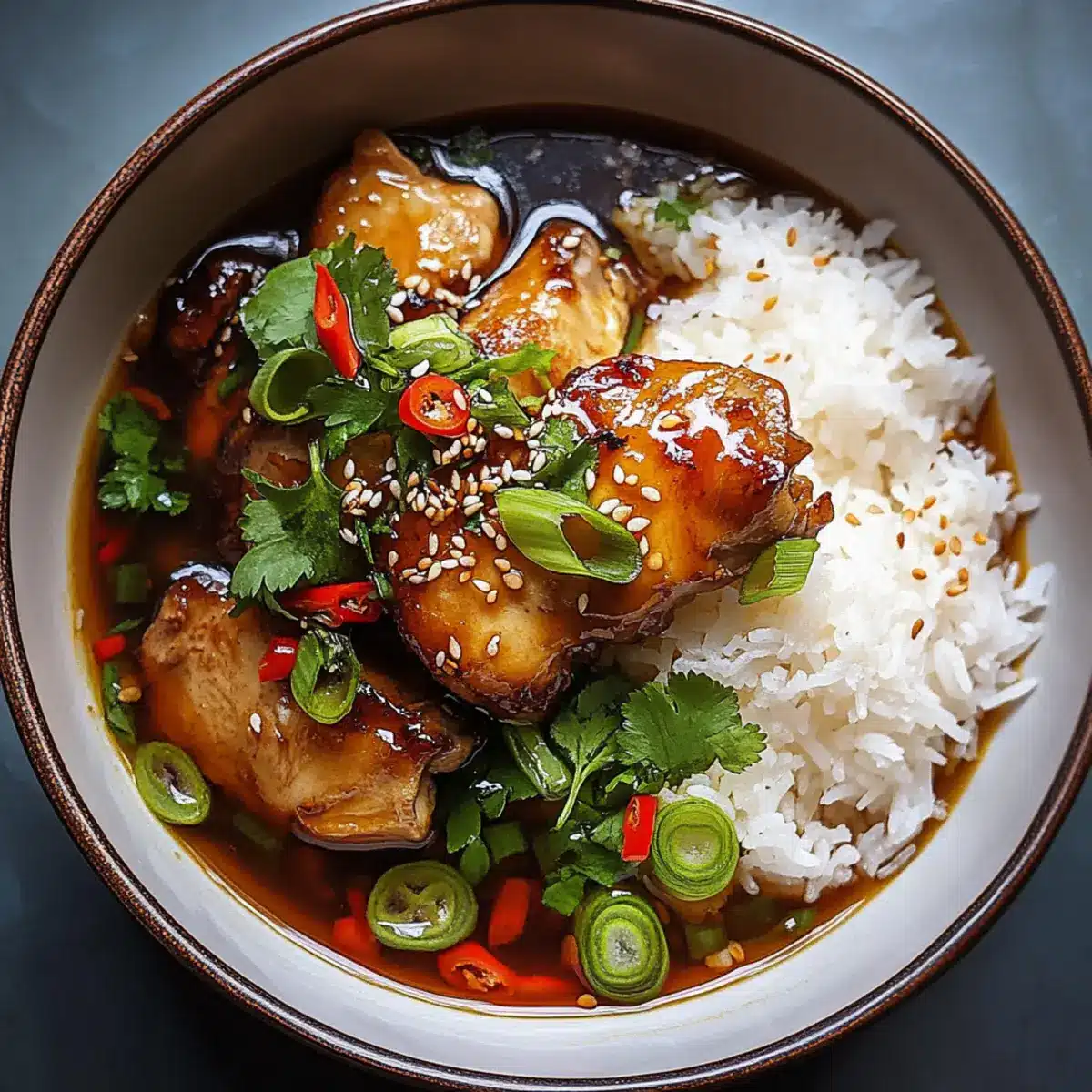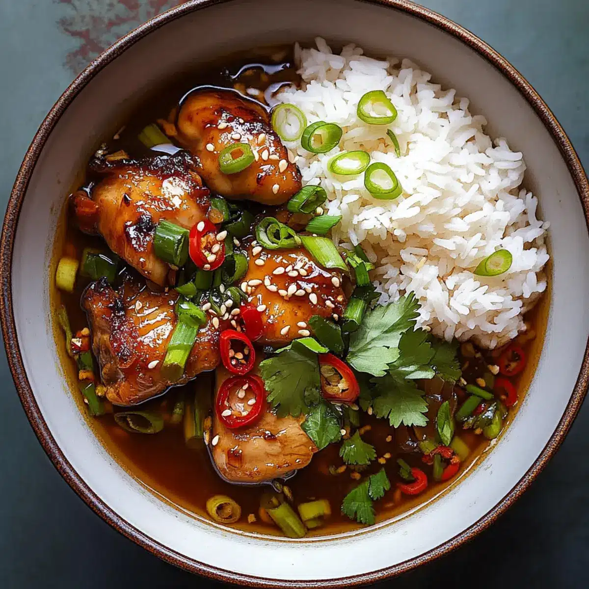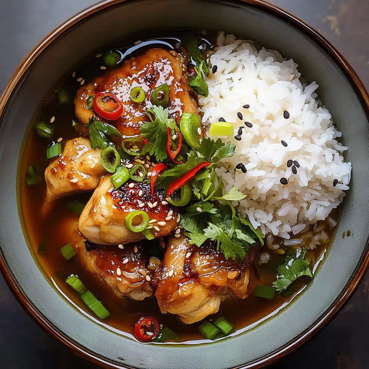 Caramelised Soy Chicken in Garlic Ginger Broth with Rice Bliss