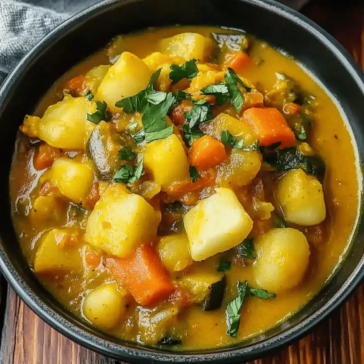 Vibrant, Flavorful Fiesta: This Caribbean Vegetable Curry bursts with colorful ingredients and aromatic spices, creating a delightful dish that will brighten your dinner table.