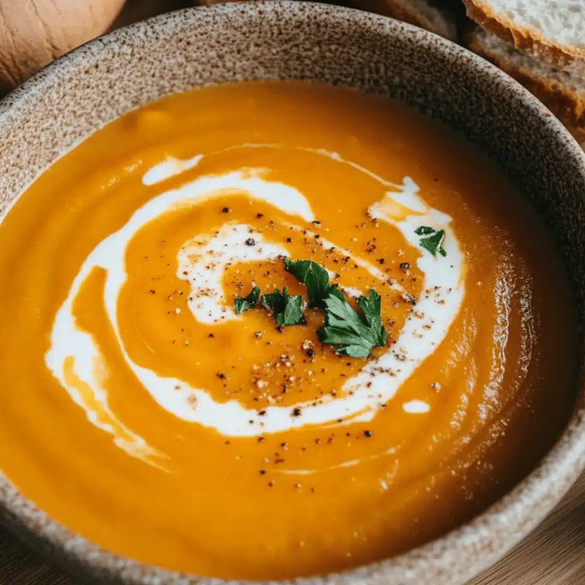 Herbed Yogurt: A dollop of herbed yogurt or sour cream provides a tangy contrast to the sweetness of the soup, enhancing its flavors with creamy richness. Try adding fresh dill or chives for an extra zing.