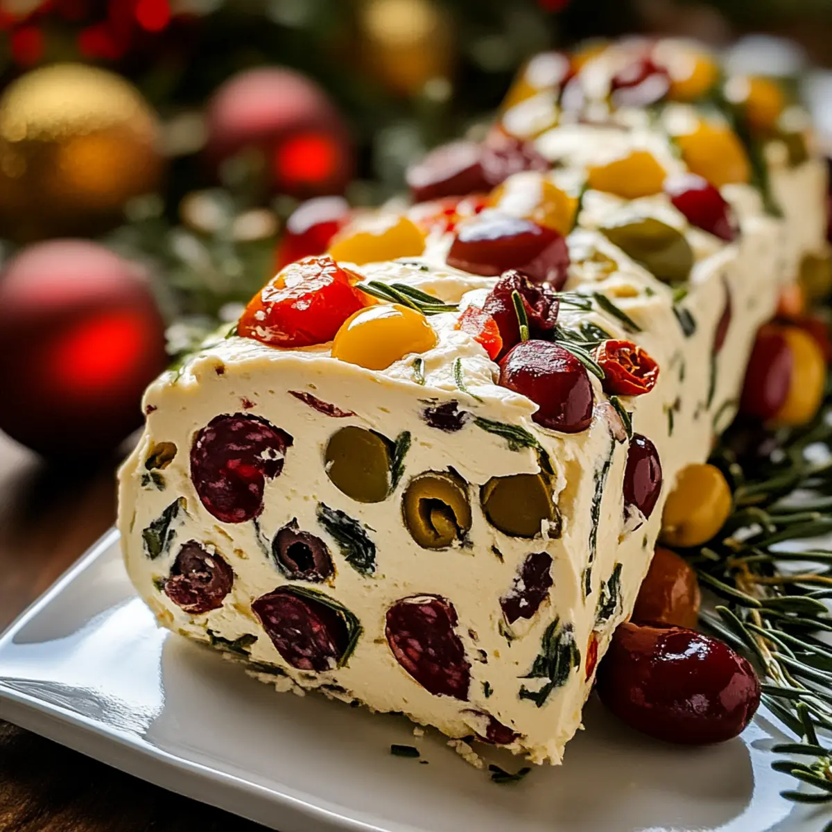 Festive Holiday Antipasto Cream Cheese Log for Easy Sharing
