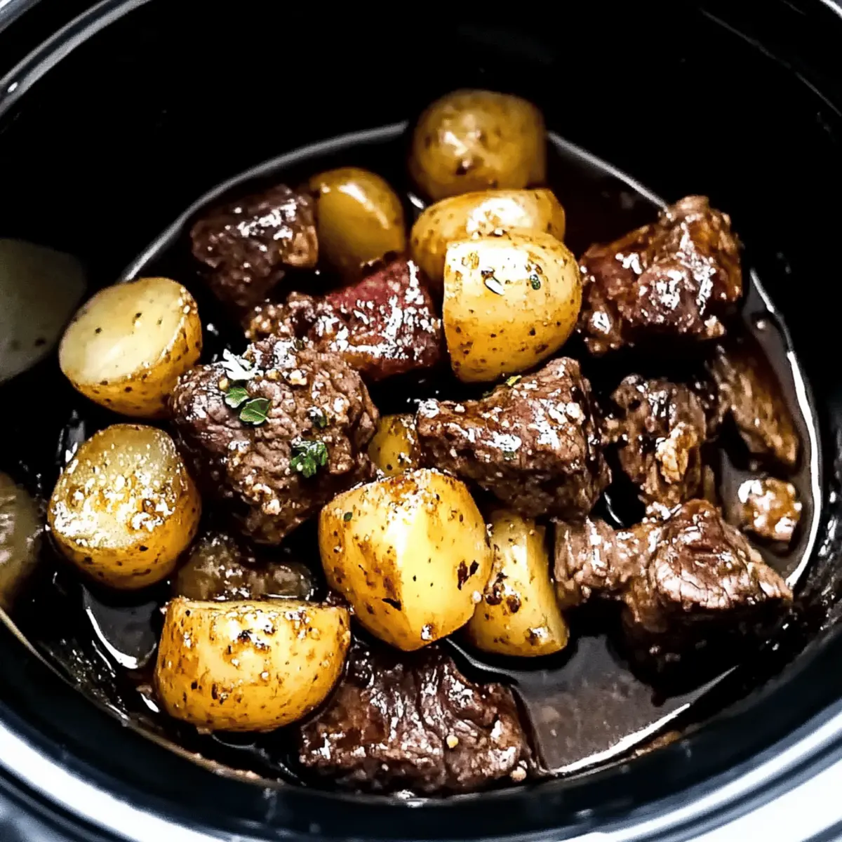 Crockpot Garlic Butter Beef Bites with Potatoes Bliss