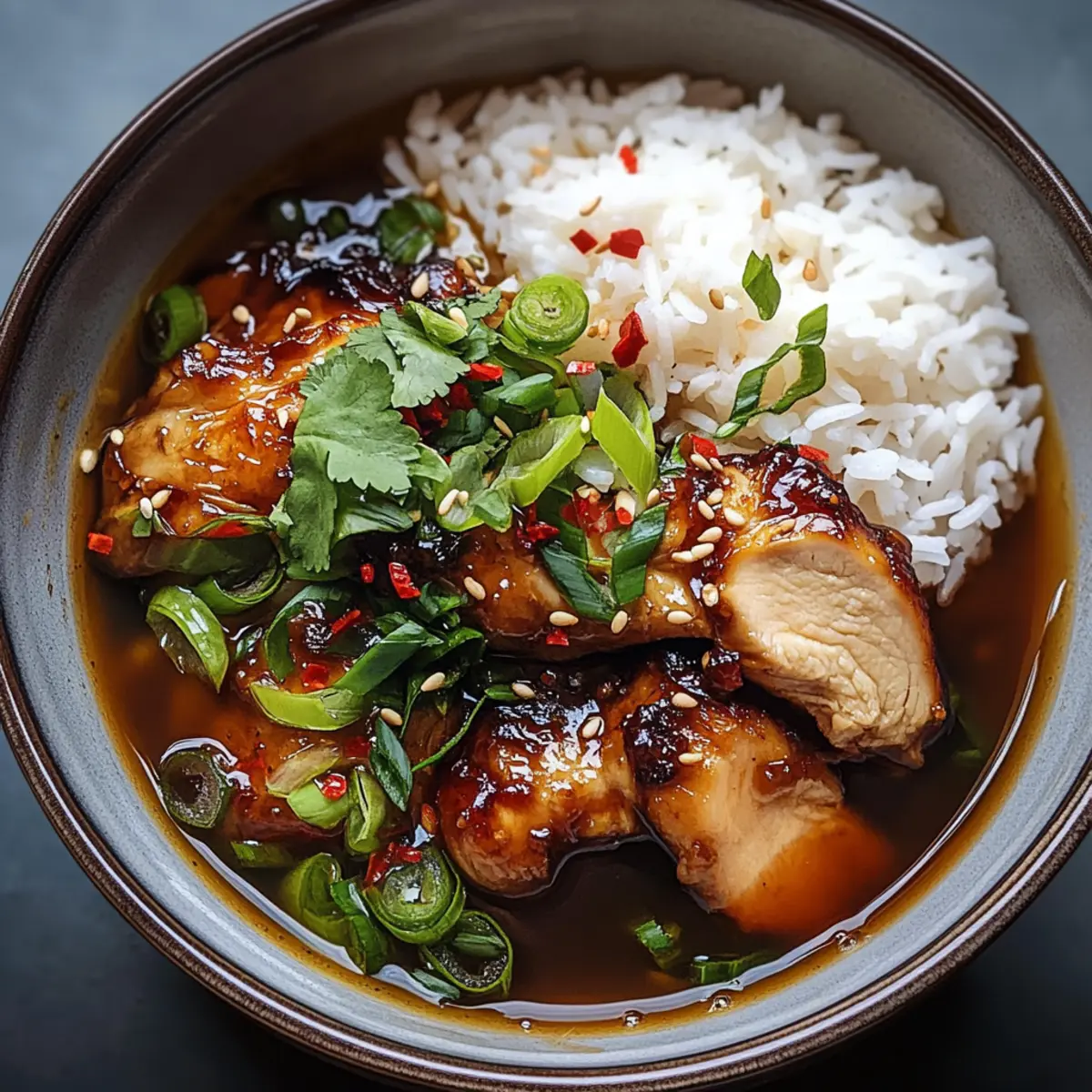 Caramelised Soy Chicken in Garlic Ginger Broth with Rice Bliss