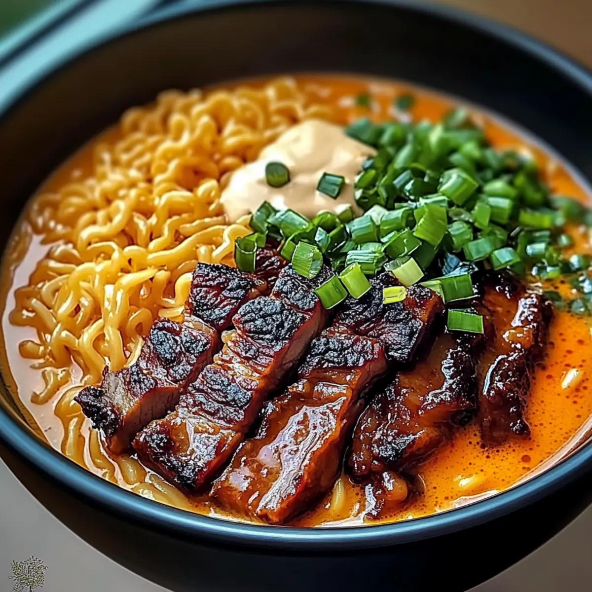 Spicy Korean Ramen with Grilled Beef & Creamy Sauce Bliss