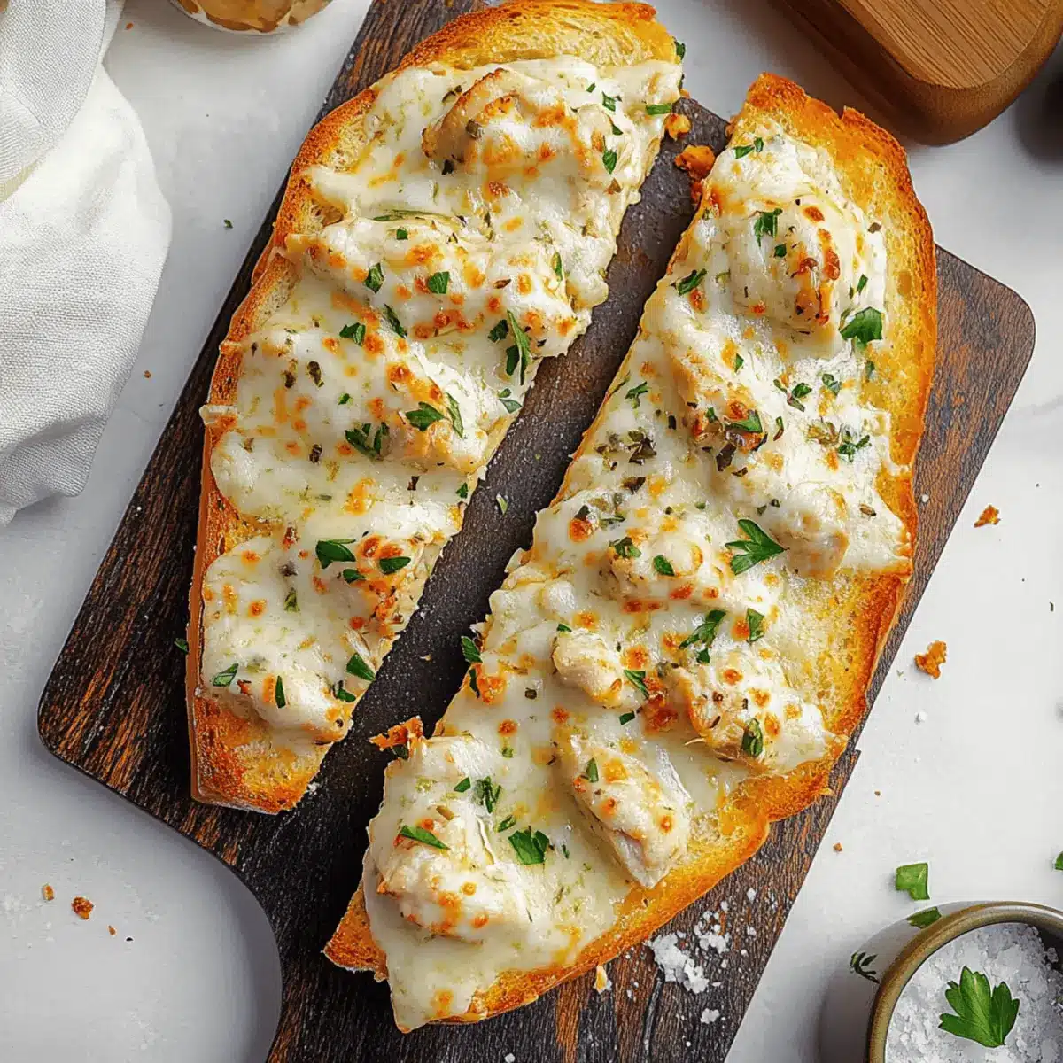 Indulge in the creamy goodness of Chicken Alfredo Garlic Bread that brings a burst of nostalgic flavors to your table!