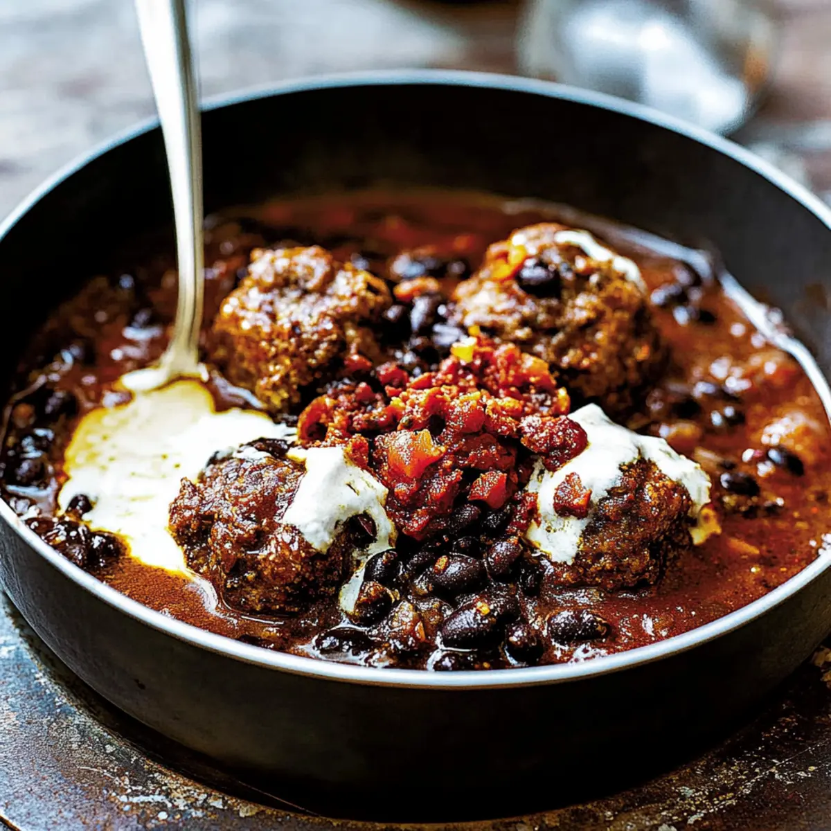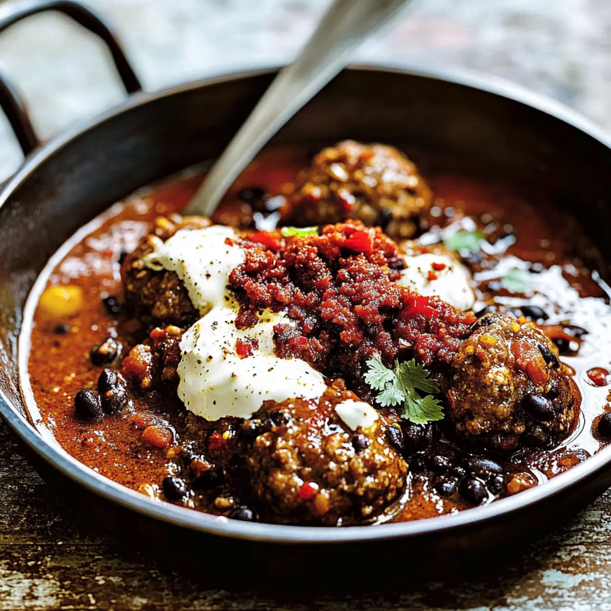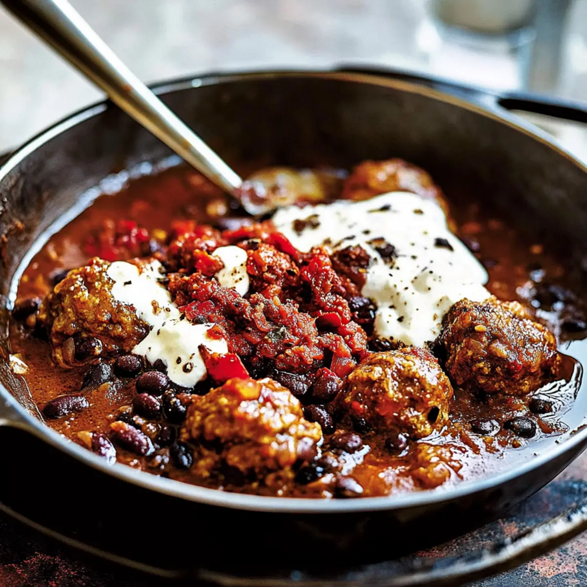 As the enticing aroma of spices fills my kitchen, I can’t help but feel a surge of excitement. Today, I’m sharing my favorite comfort food treat: Chili Meatballs in Black Bean and Tomato Sauce. This hearty dish perfectly marries the rich flavors of Mexican cuisine, turning everyday ingredients into a soul-warming feast. Not only are these meatballs a breeze to prepare, but they also make for a crowd-pleasing family dinner that’s both satisfying and fun to serve. Imagine sinking your fork into tender meatballs, nestled in a zesty sauce loaded with black beans and a delightful crunch of crispy chorizo on top. Whether it’s a cozy weeknight or a gathering with friends, this recipe brings the joy of homemade goodness straight to your table. Ready to spice up your cooking routine? Let’s dive into this deliciously tempting dish!