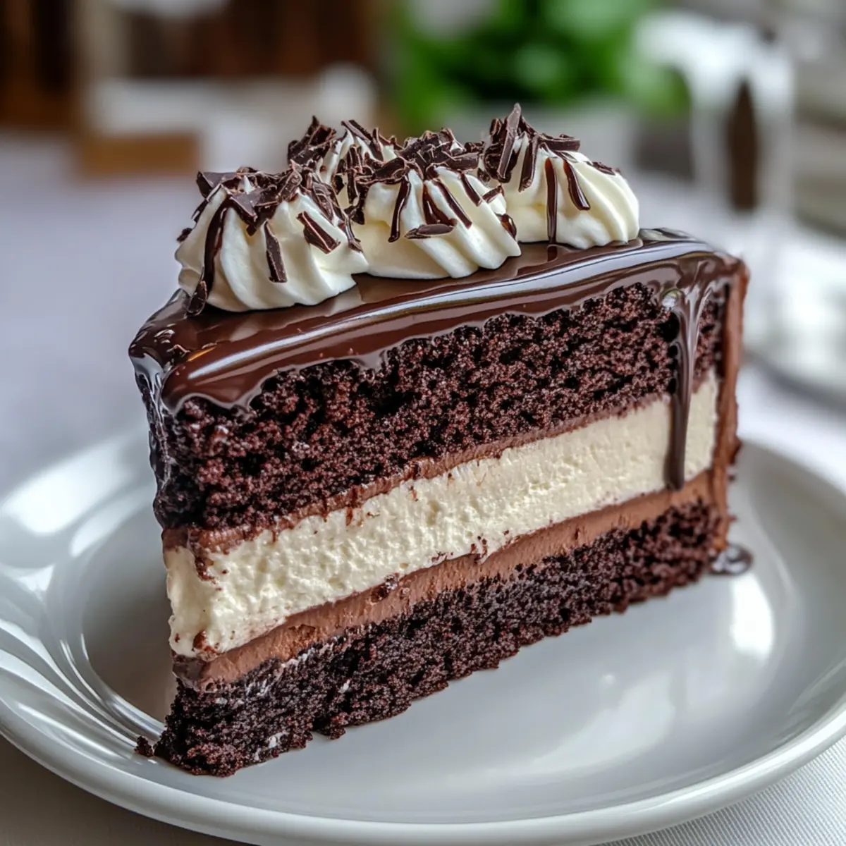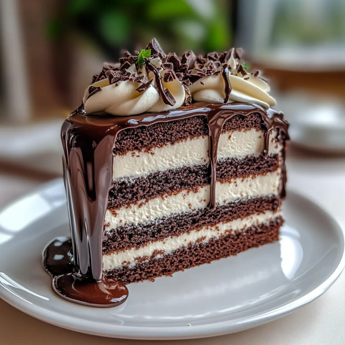 Chocolate Ganache Drizzle: Extra ganache can be drizzled on the plate, adding a luscious touch that’ll make every slice just that much more decadent.