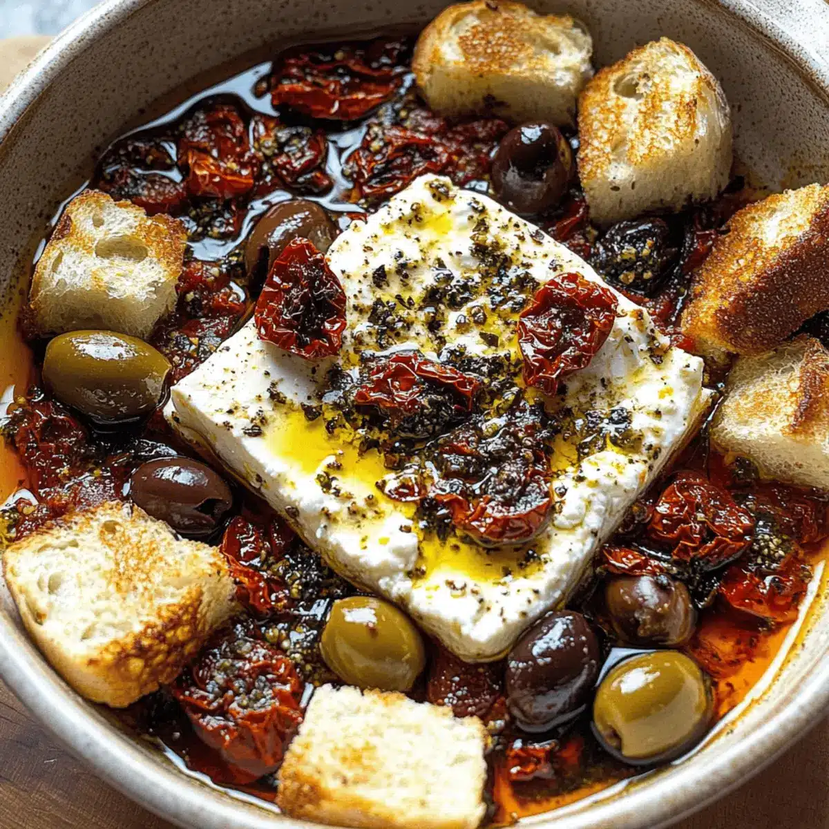 As I stood in my kitchen one afternoon, a delightful aroma wafted through the air, reminiscent of sun-soaked Mediterranean coasts. I had just pulled out a steaming dish of Creamy Baked Feta, my new favorite appetizer that’s not just simple to whip up, but it’s a guaranteed crowd-pleaser. This recipe harmoniously blends creamy feta with tangy olives and sweet sun-dried tomatoes, creating an elegant dish that’s perfect for casual gatherings or special occasions. The best part? You can prepare it ahead of time, allowing you to enjoy time with your guests instead of being stuck in the kitchen. Plus, it pairs beautifully with crunchy crostini or crispy pita chips for that irresistible texture. Ready to tantalize your taste buds with some Greek-inspired goodness? Come discover how effortless and delicious this appetizer can be!