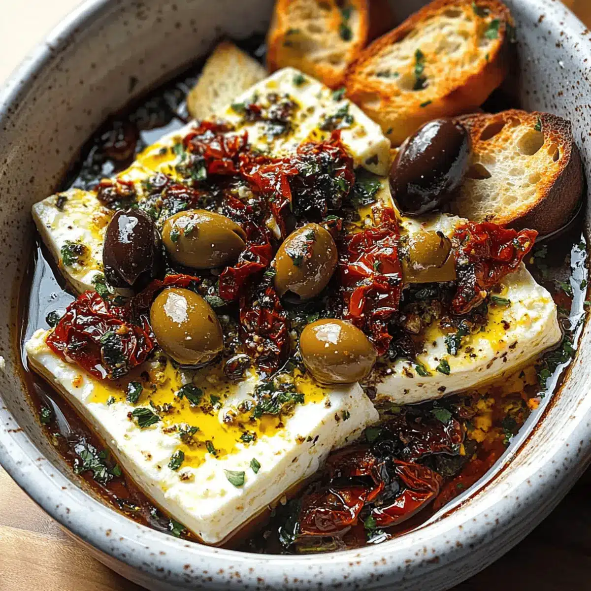 Olive Tapenade: This robust spread adds a punch of flavor, complementing the feta while introducing another layer of Mediterranean charm to your appetizer.