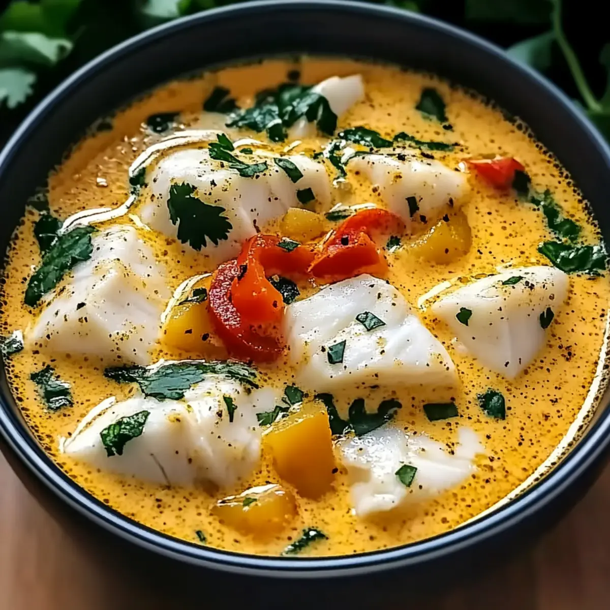 Remove the pot from heat and ladle the aromatic stew into bowls. Garnish each serving with freshly chopped cilantro for a burst of freshness. The rich aroma of your Creamy Coconut White Fish Stew is now ready to be enjoyed by your family!