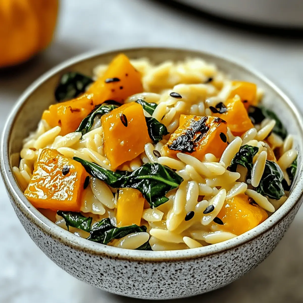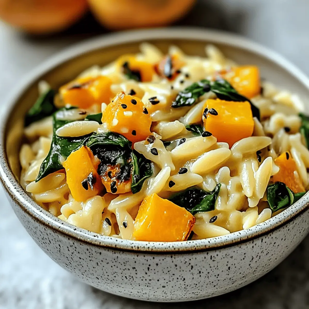 Indulge in this Creamy Orzo with Roasted Butternut Squash and Spinach; it’s a symphony of flavors that will surely make your dinners special!