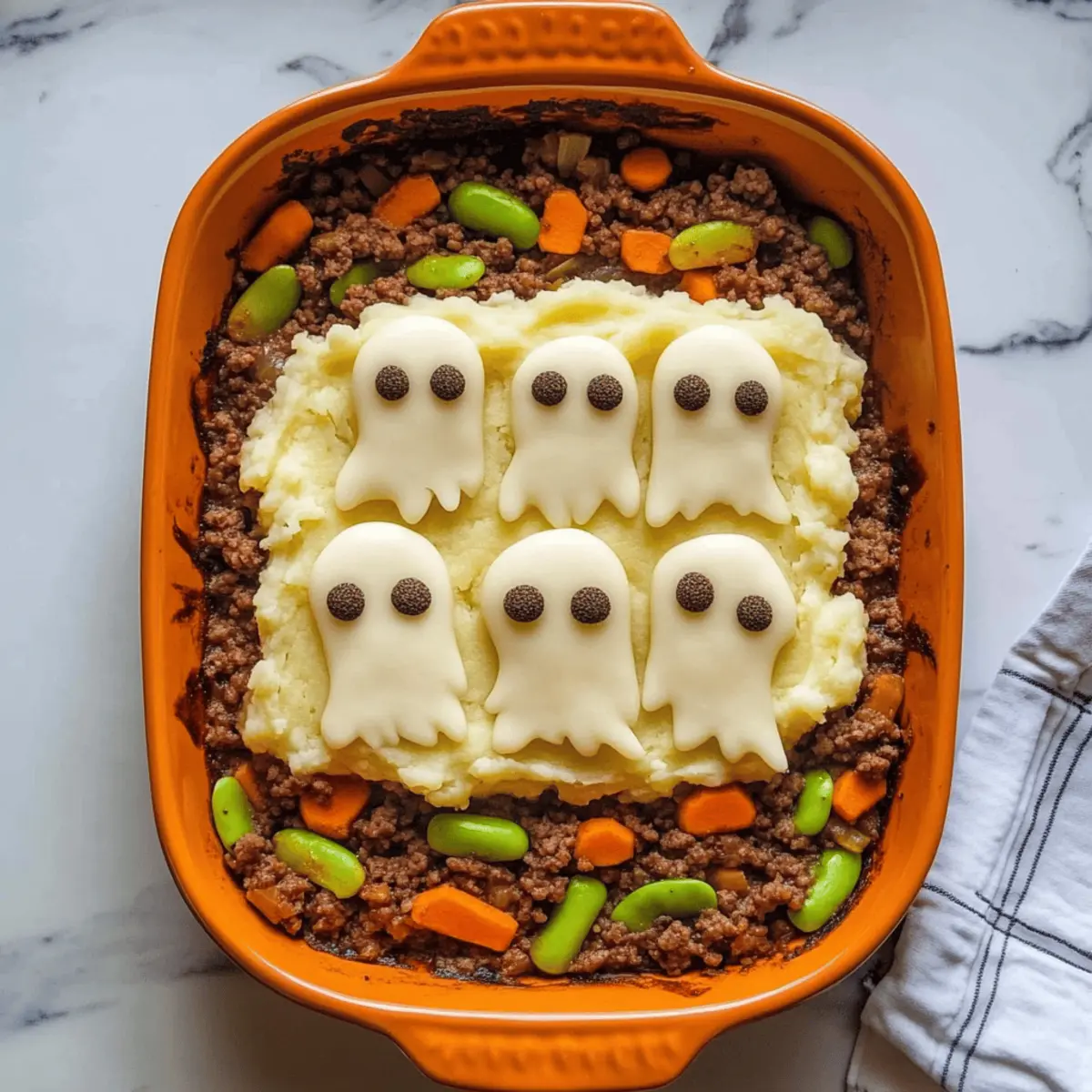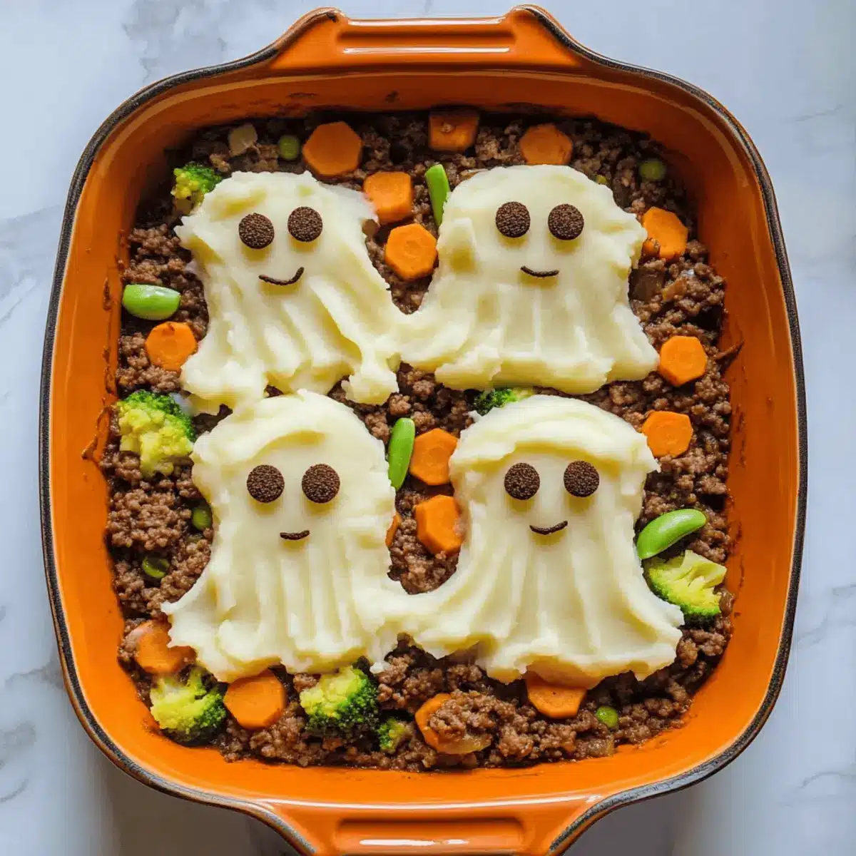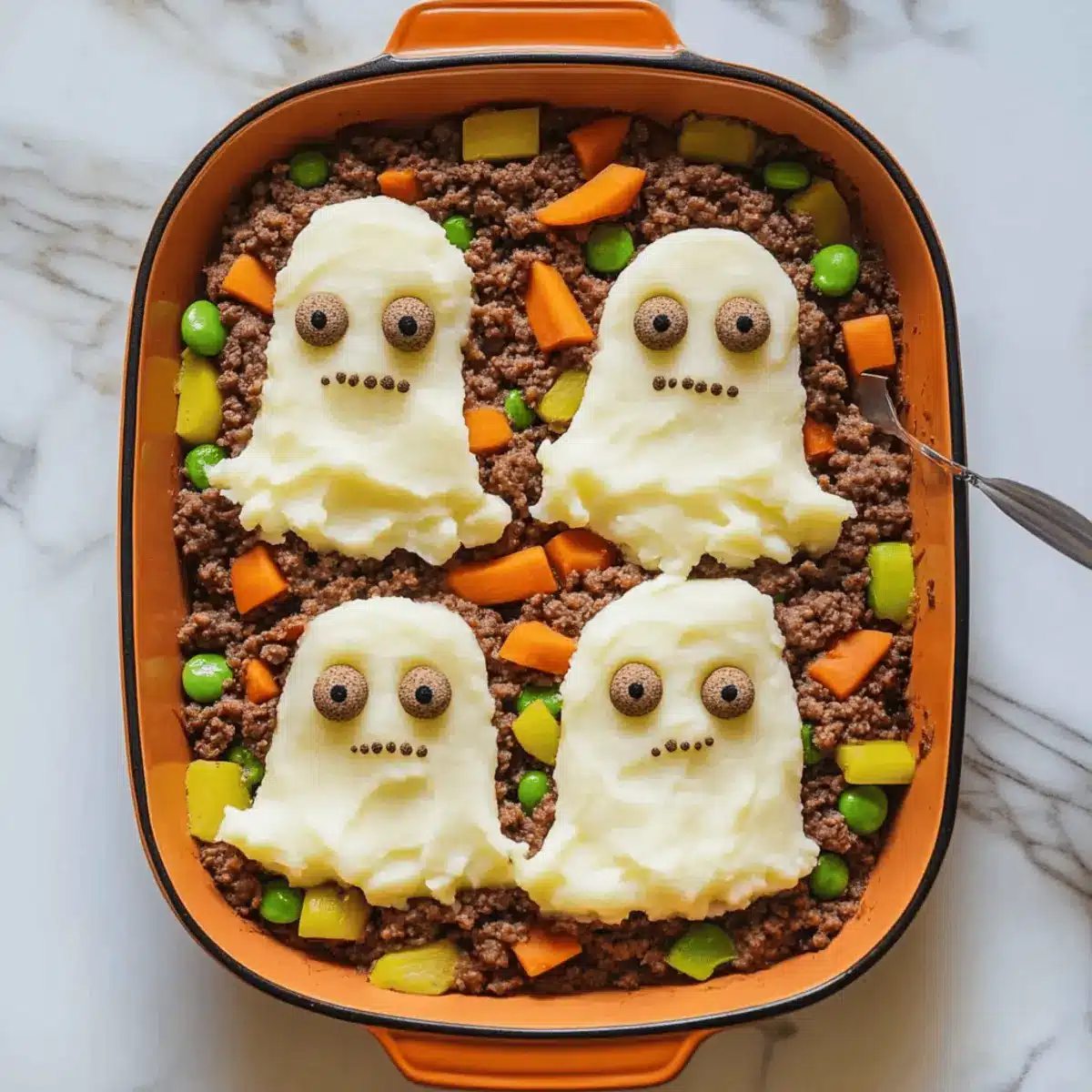 These Creepy Shepherd’s Pie are perfect for busy home cooks looking to save time during the hectic week! You can prepare the filling (ground beef and vegetables) up to 3 days in advance; simply let it cool and store it in an airtight container in the refrigerator. The ghost potato topping can be made 24 hours ahead as well—just keep it covered to prevent drying out. When you’re ready to serve, layer the filling in your baking dish, pipe on the ghost potatoes, and bake at 375°F for 20–25 minutes until golden. This way, you’ll enjoy a delicious, spooktacular meal without the same-day rush!