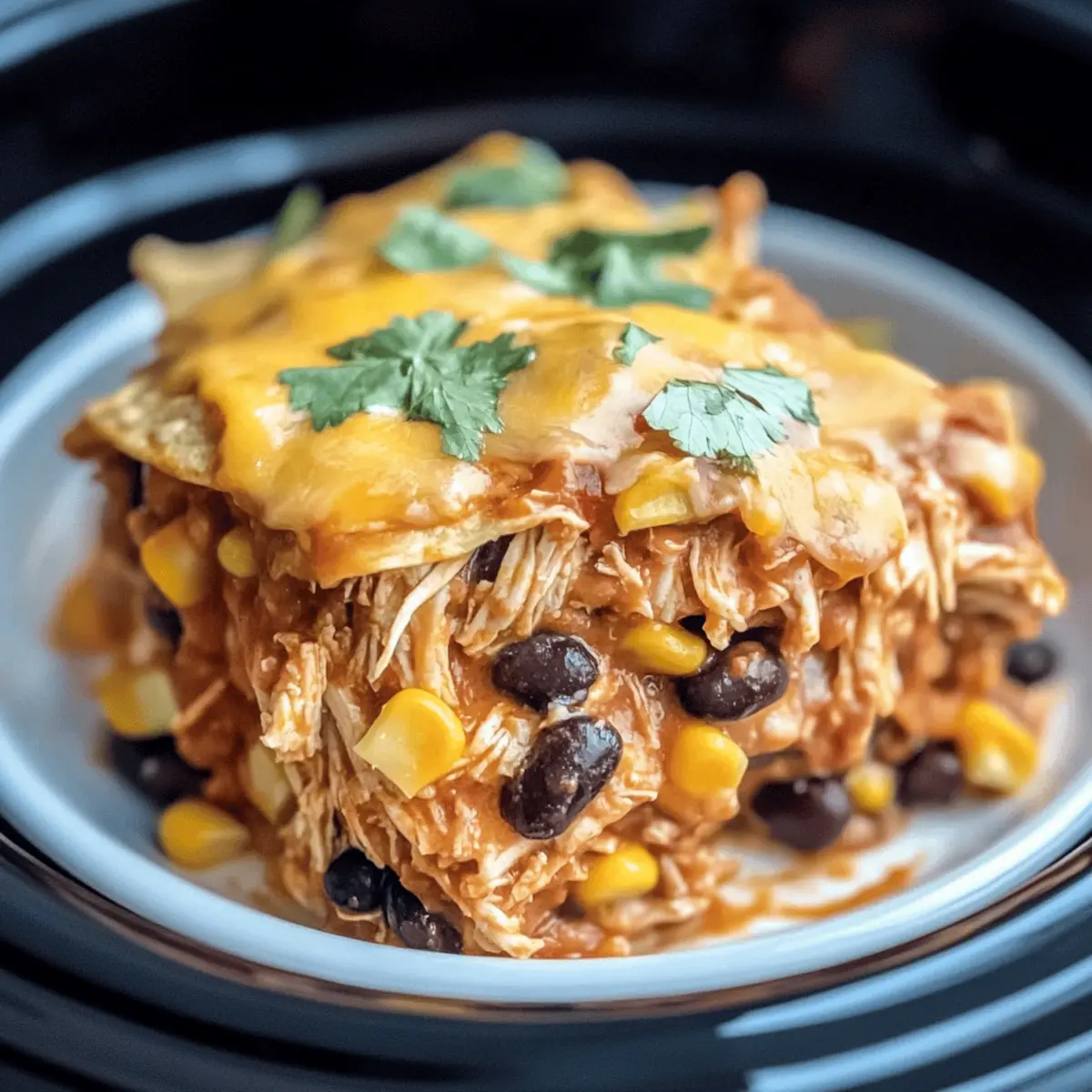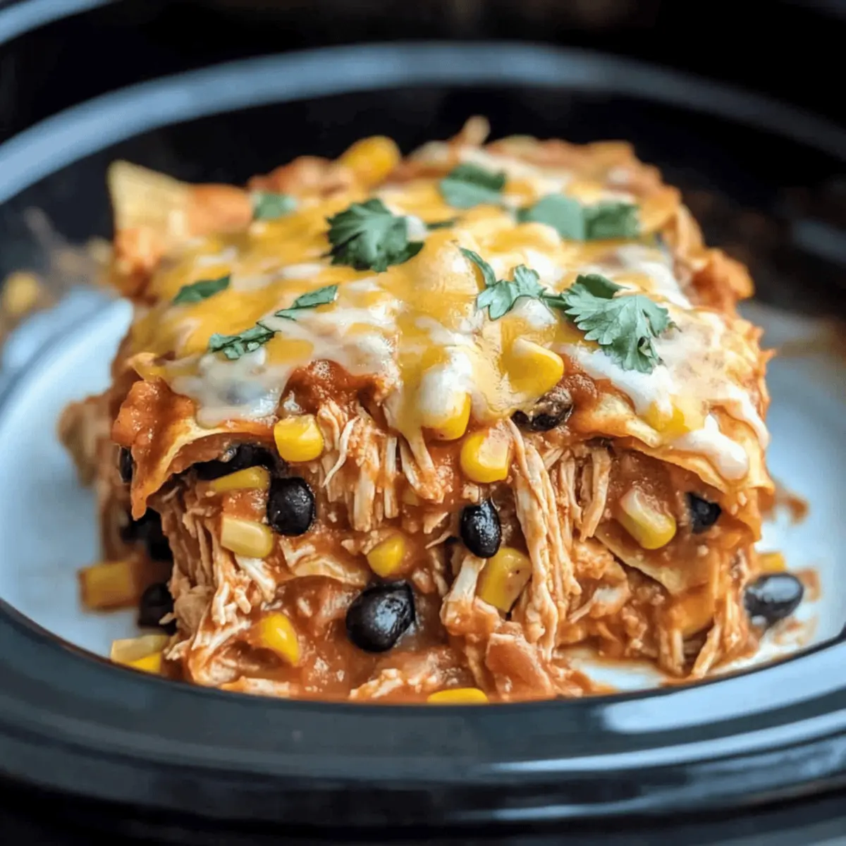 Once everything is done, remove the lid and sprinkle fresh cilantro on top for a burst of color and flavor. Serve up your Crockpot Chicken Enchilada Casserole warm, and enjoy the comforting, cheesy goodness that will have everyone coming back for seconds!