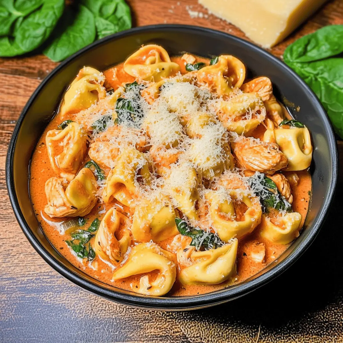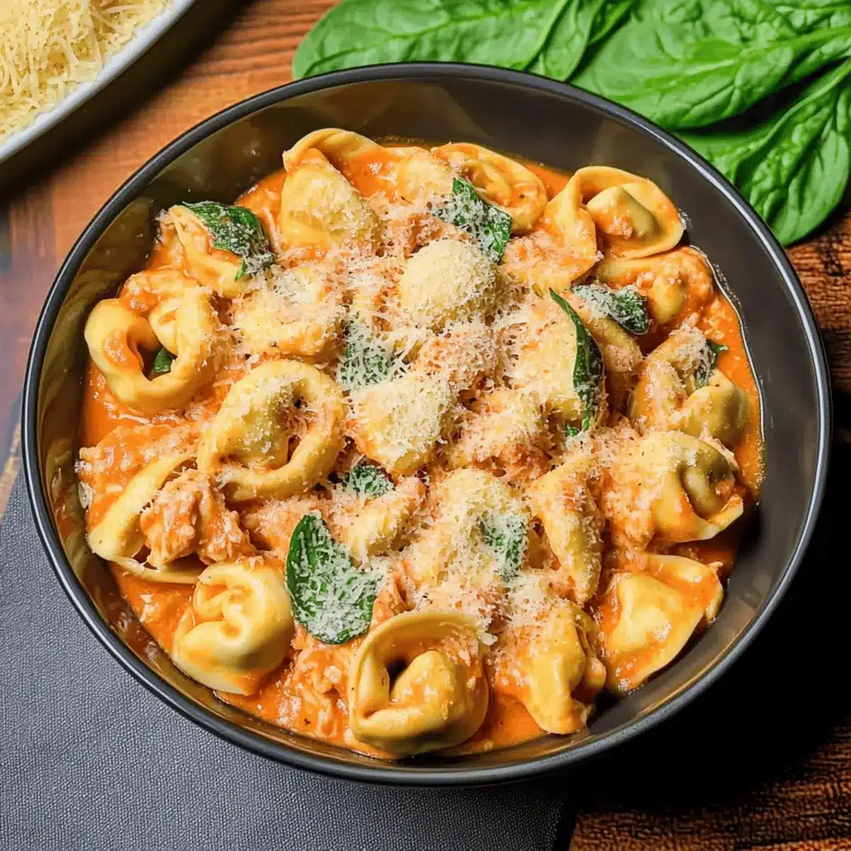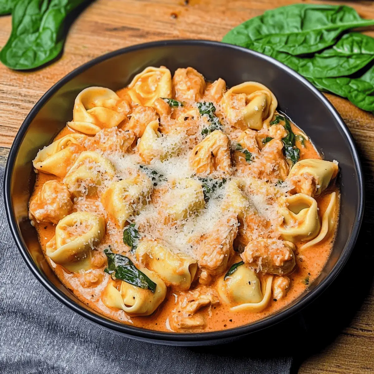 Heartwarming Comfort Food: The tender chicken and cheese tortellini form a cozy dish that’s ideal for chilly nights or family gatherings.
