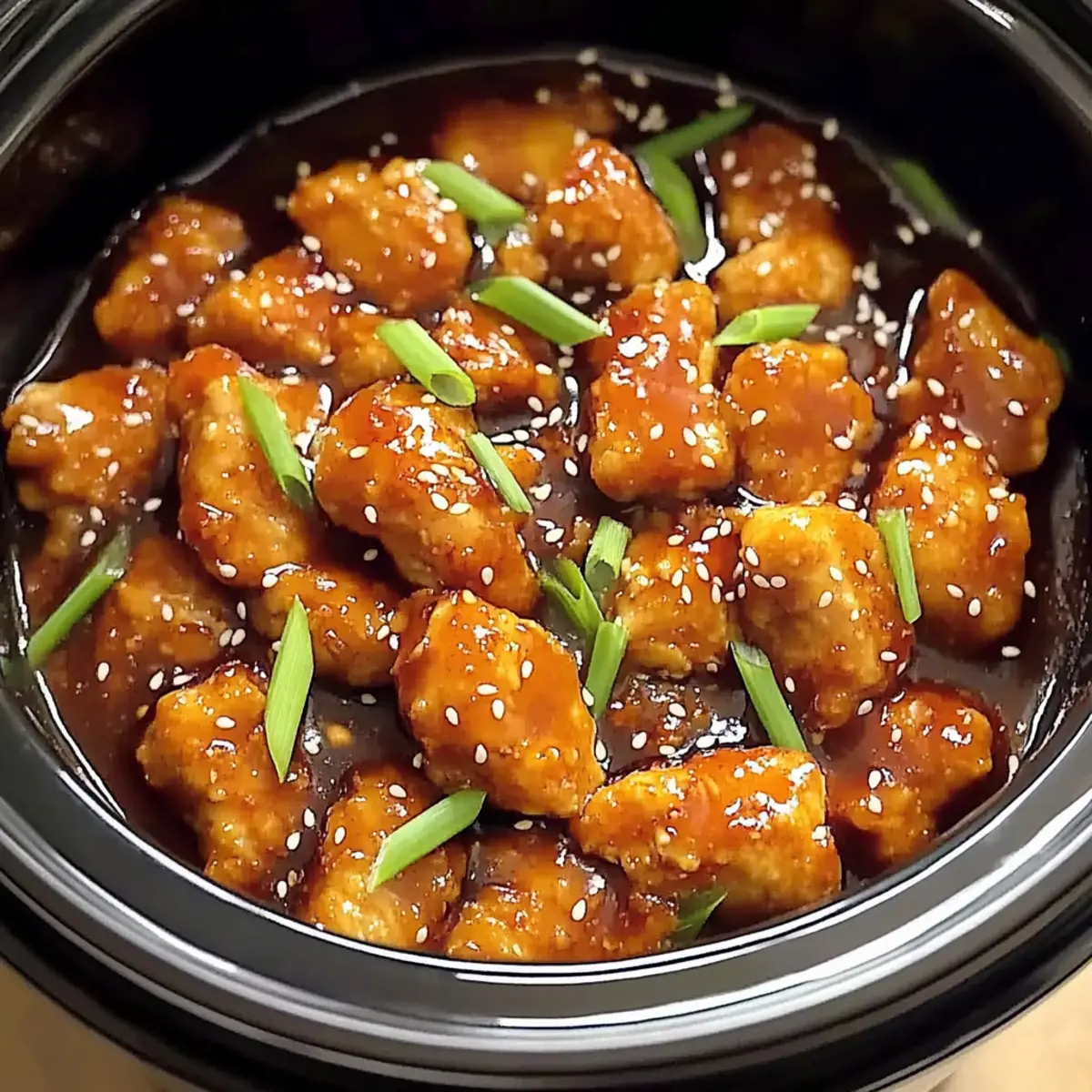 Pour the prepared sauce over the browned chicken in the slow cooker, ensuring every piece is evenly coated. Stir gently to avoid breaking the chicken. Cover the slow cooker and set it to cook on LOW for 2-3 hours or HIGH for 1.5-2 hours, stirring halfway through. Expect the chicken to tenderize beautifully while absorbing the rich flavors of the sauce.