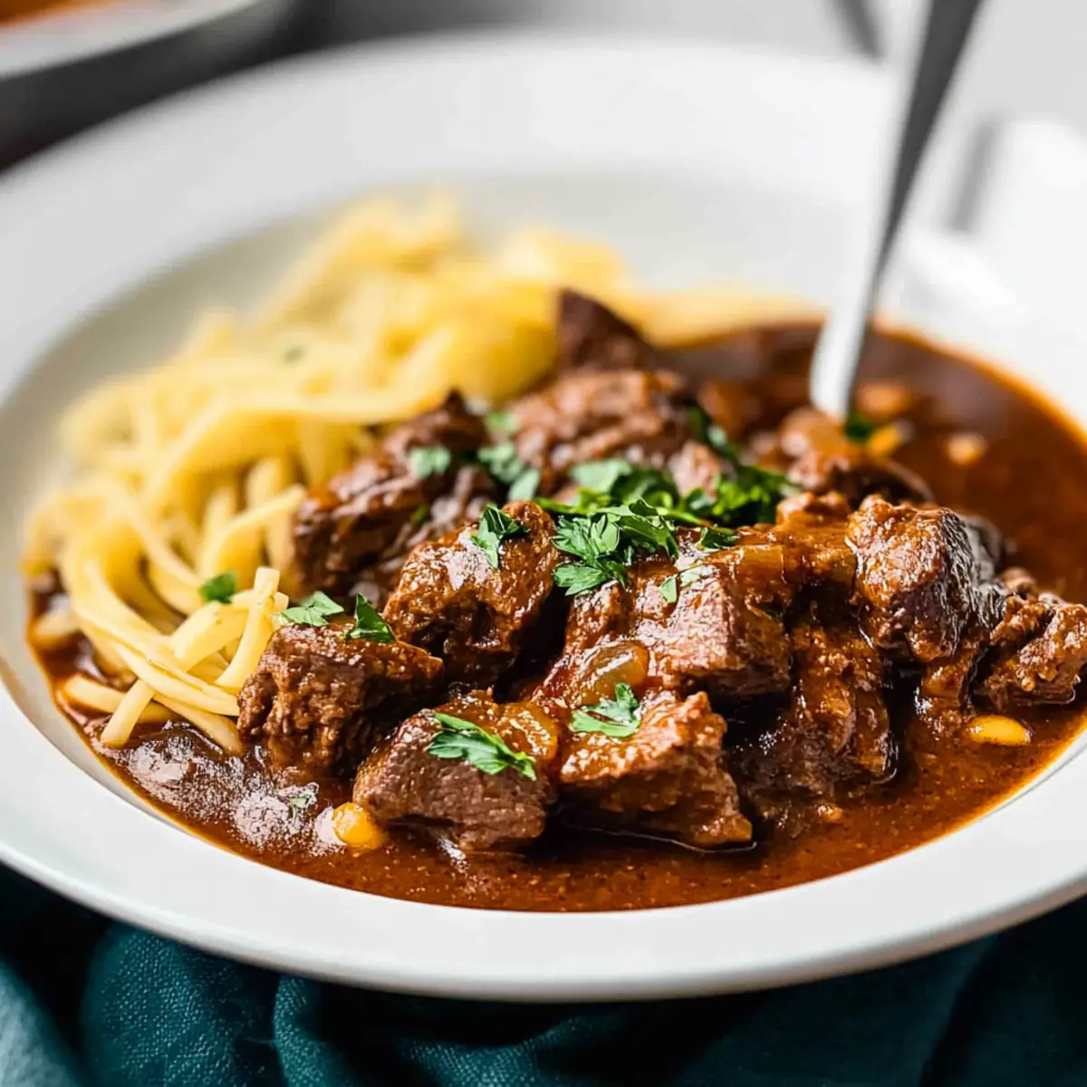 Rich, Hearty Flavor: A perfect blend of tender beef, onions, and paprika creates a savory feast that’s bursting with flavor.