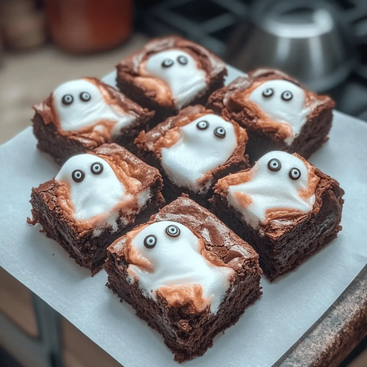 Visual Delight: Fluffy marshmallow ghosts and candy eyes transform simple brownies into a playful centerpiece that garners attention at any gathering.