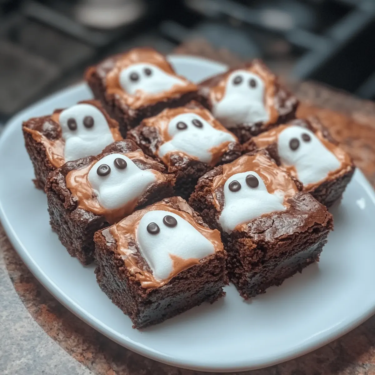 Caramel Drizzle: Drizzle caramel sauce over the marshmallow topping for an added layer of sweetness. Each bite will be a gooey treat, combining the fudgy brownies with sticky caramel and fluffy ghosts.