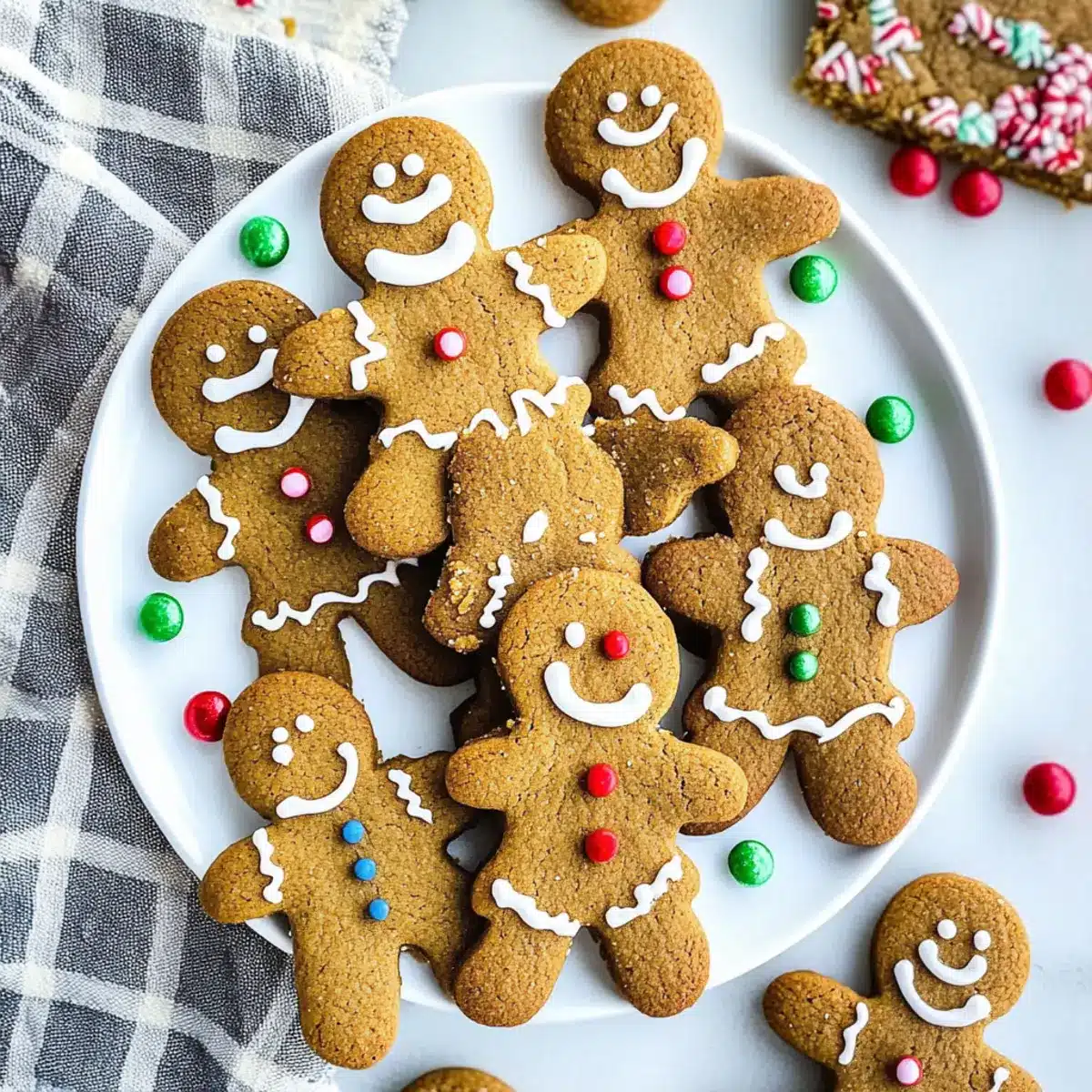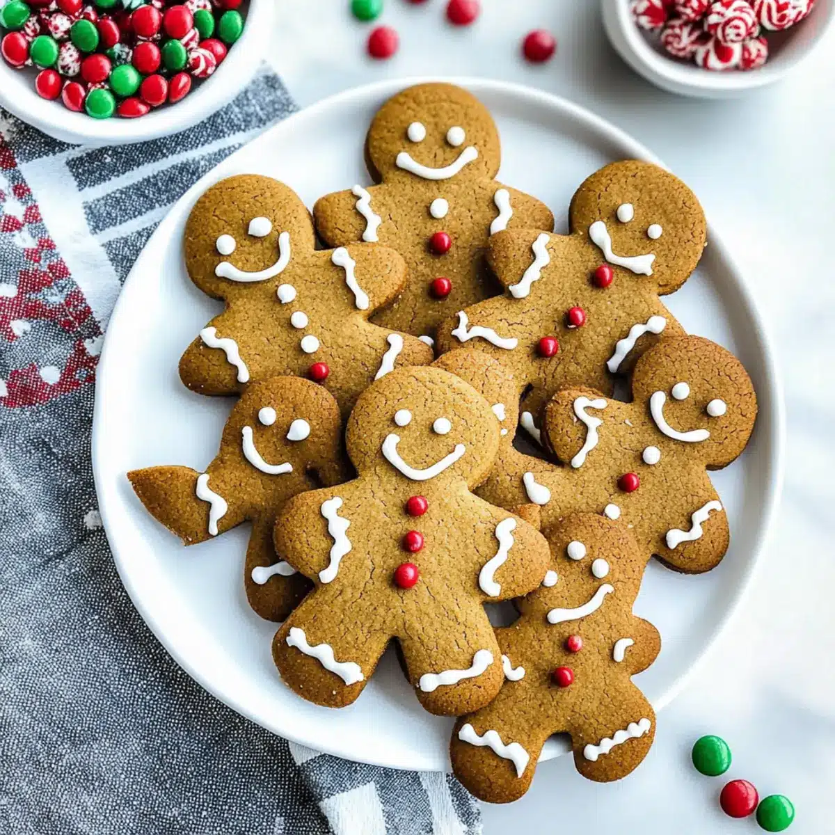 In a medium bowl, whisk together 2 cups of powdered sugar, 2 tablespoons of milk, and 1 teaspoon of vanilla extract until smooth and spreadable. Once your Gingerbread Men Cookies are completely cool, use a piping bag or an offset spatula to frost them with the icing. Add decorative candies or sprinkles on top for a festive touch, allowing the frosting to set for about 15 minutes before enjoying.
