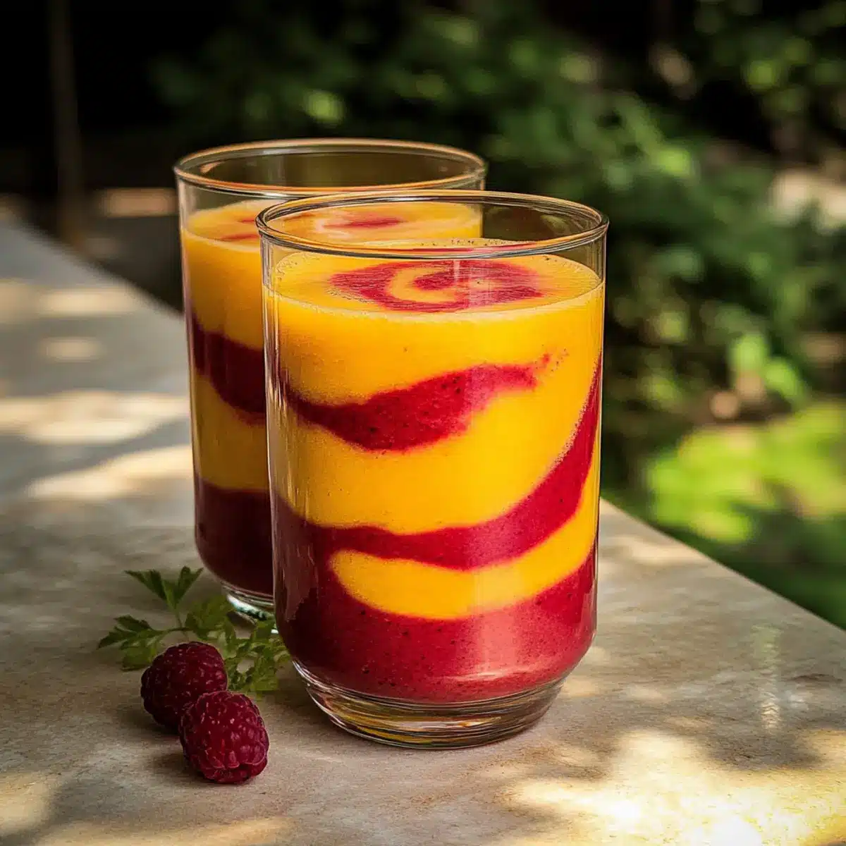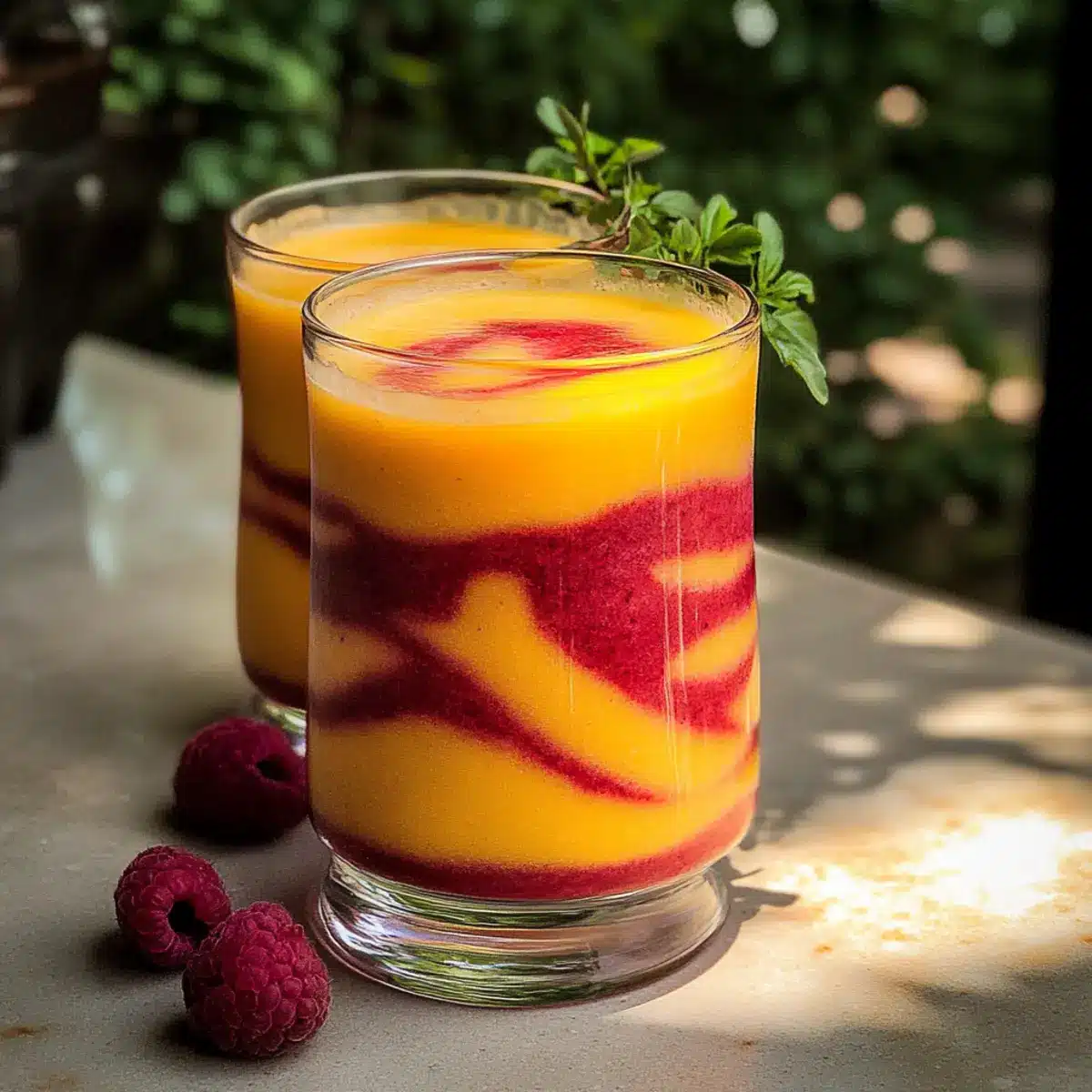 These Golden Peach Sunrise Smoothies are perfect for busy home cooks looking to save time during the week! You can prepare the vibrant raspberry purée up to 24 hours in advance by mashing 1 cup of fresh raspberries and storing it in an airtight container in the refrigerator. Additionally, blend the smoothie base without the raspberry purée and refrigerate it for up to 3 days, allowing the flavors to meld beautifully. When you’re ready to enjoy your smoothie, simply pour the smoothie base into a glass, layer it with the raspberry purée, and give it a gentle stir for a refreshing, nutrient-packed boost—just as delicious as when freshly made!