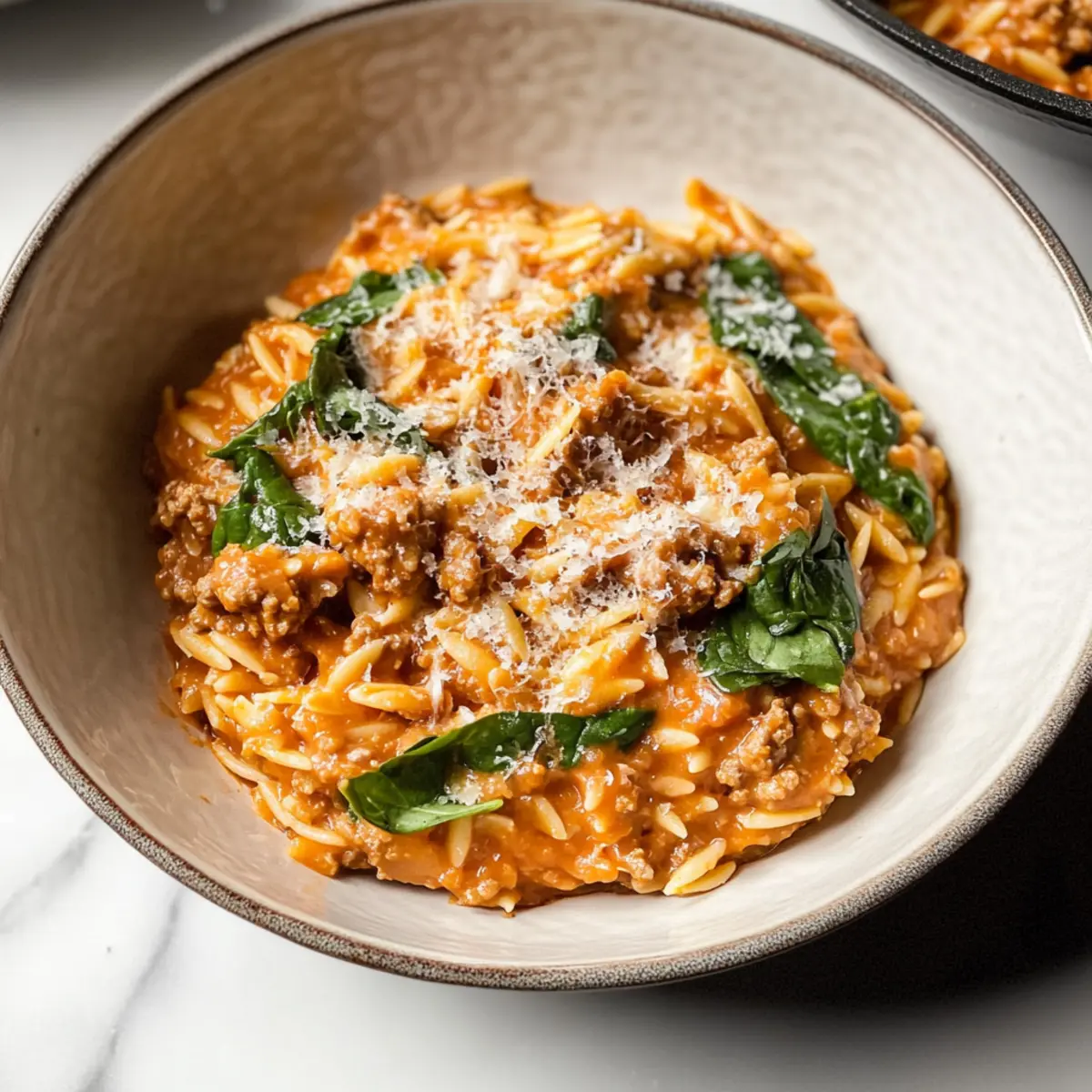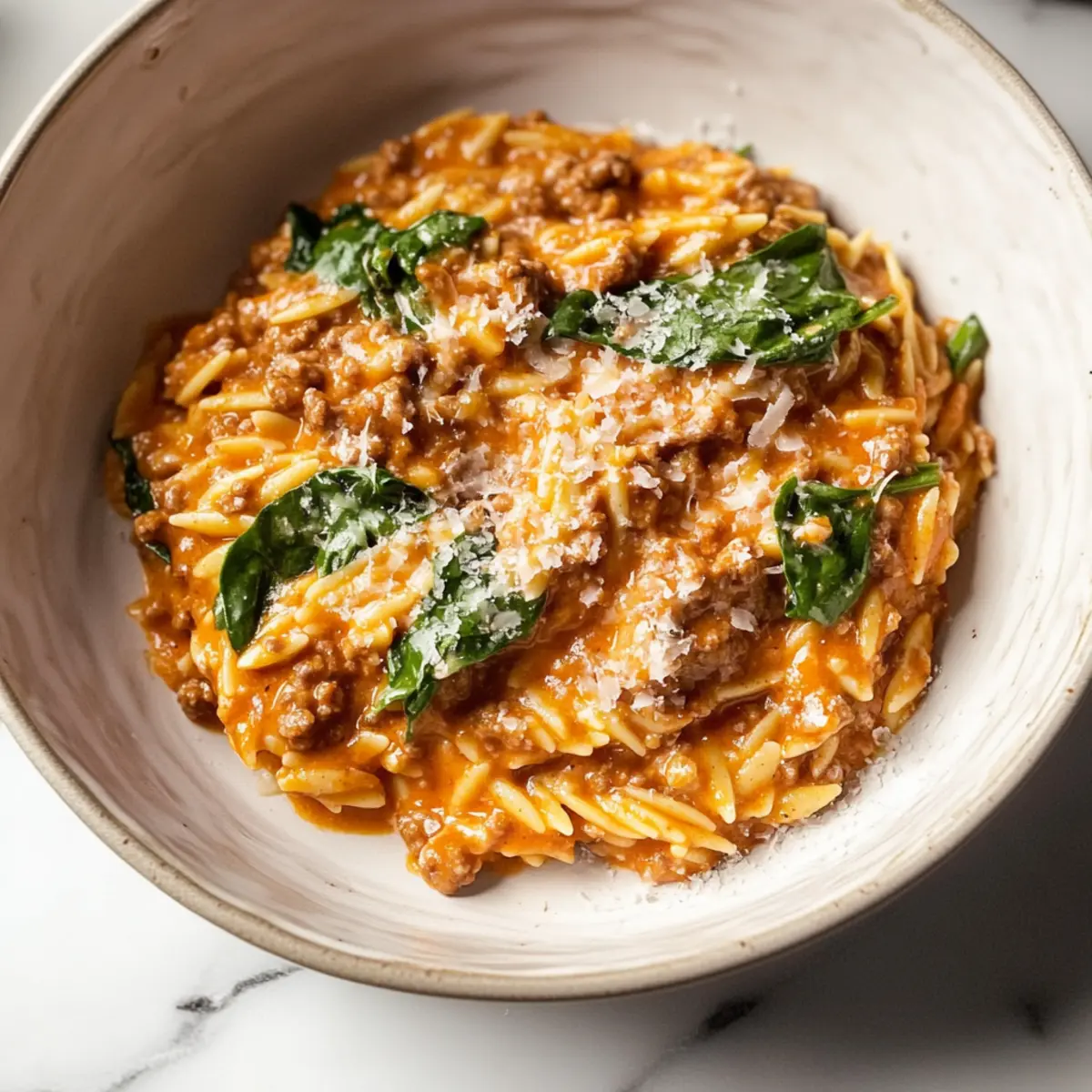 Creamy Ground Beef Orzo with Tomato Cream Sauce Delight
