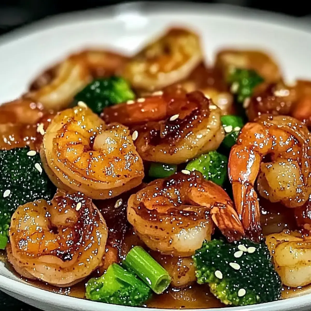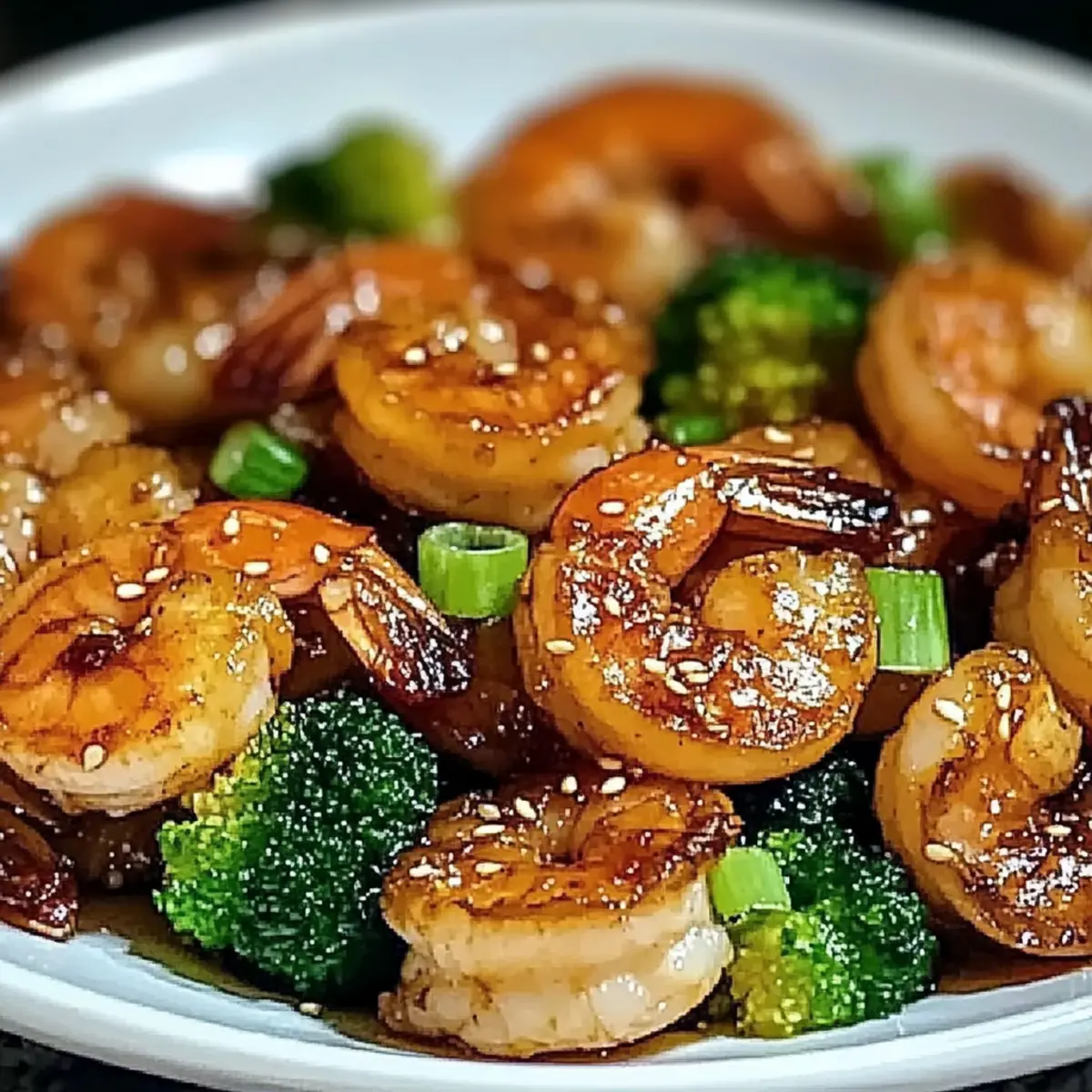 - Remove from heat and transfer the shrimp to a serving plate. Garnish with green onions and sesame seeds.