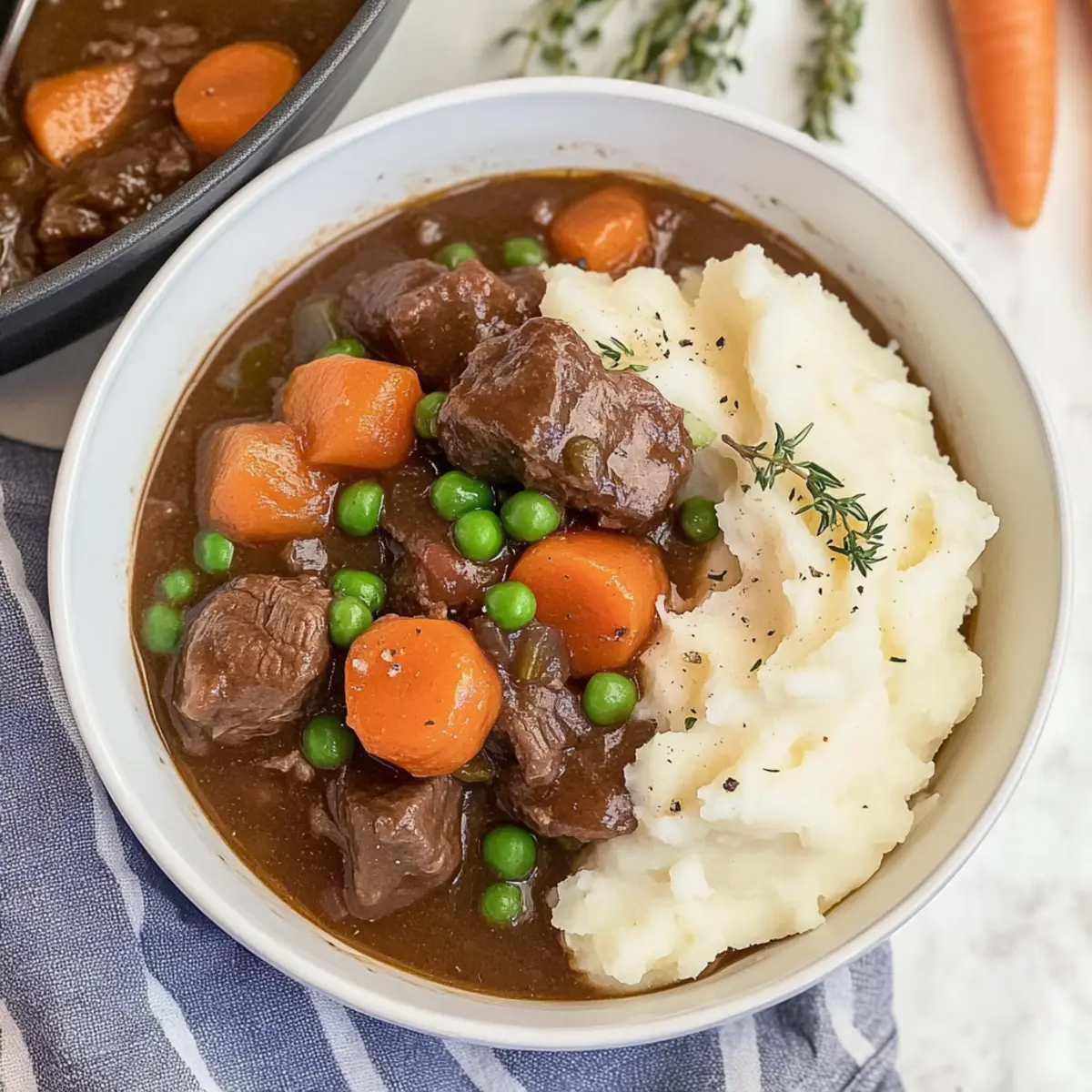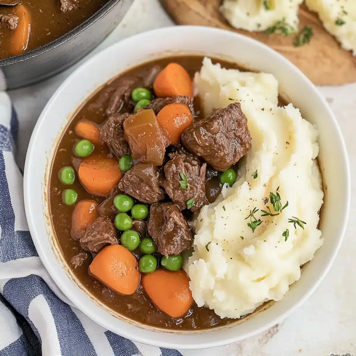 These comforting Irish Stew with Mashed Potatoes are perfect for meal prep! You can easily prepare the stew base up to 3 days in advance by following the first five steps and allowing it to cool completely before transferring to an airtight container. Refrigerate the beef stew, and when you’re ready to enjoy it, simply heat it on the stovetop until warmed through. For the mashed potatoes, peel and chop the potatoes, storing them submerged in water to prevent browning for up to 24 hours. Simply boil and mash them just before serving to ensure they’re creamy and fresh. By prepping ahead, you’ll have a hearty meal on the table with minimal effort, making busy weeknights a breeze!