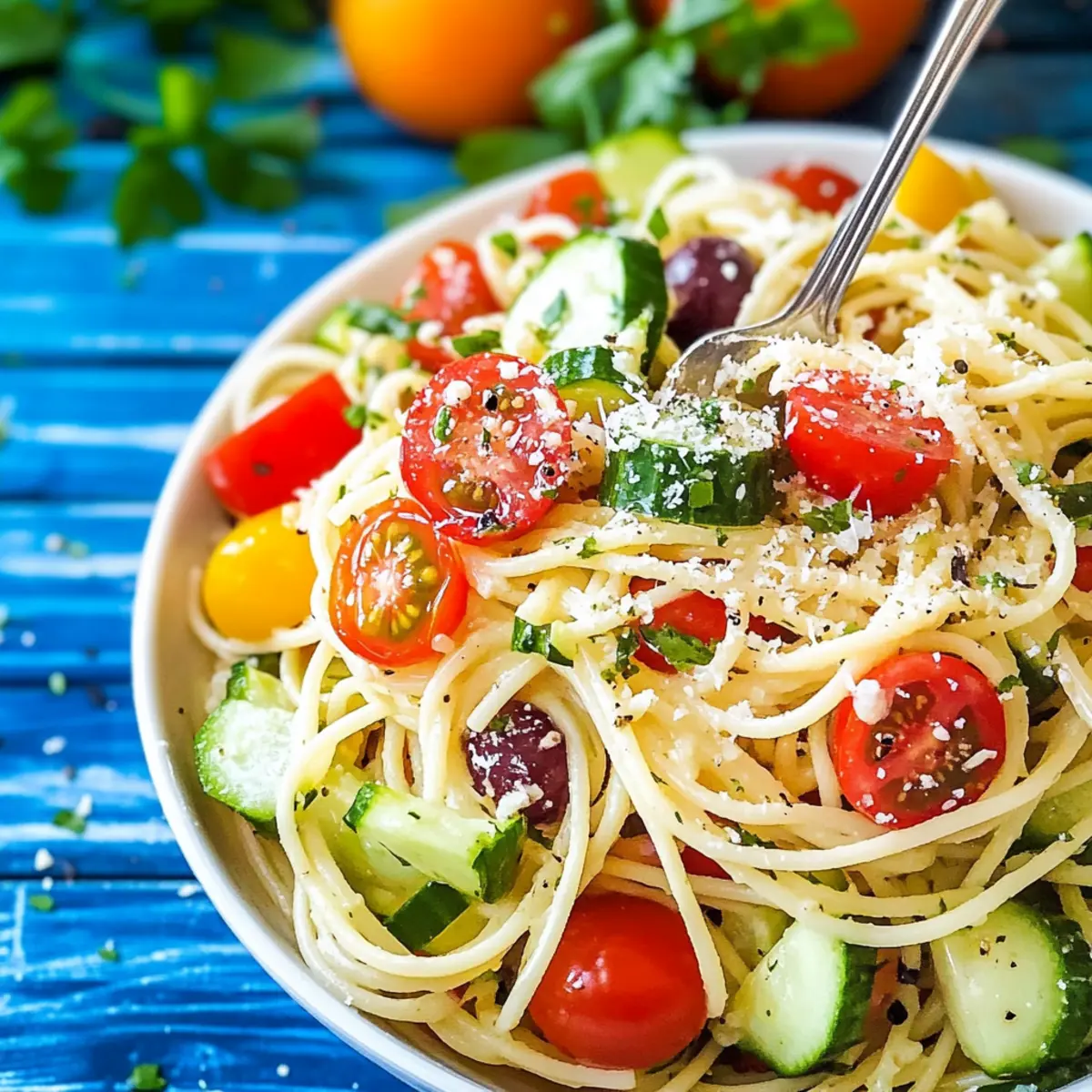 As the sun shines brighter and the air fills with the sound of laughter, there’s nothing quite like gathering around a table adorned with vibrant food. My Italian Spaghetti Salad is not just your average dish; it’s a celebration of summer in every bite! This refreshing salad dances with colorful vegetables and is coated in a zesty Italian dressing, making it an irresistible crowd-pleaser at potlucks and BBQs. With its easy make-ahead feature, this dish allows you to spend less time in the kitchen and more time enjoying the company of family and friends. Trust me, once you try it, you’ll want it on your summer menu every week! What captivating variations will you dream up for your own Italian Spaghetti Salad?