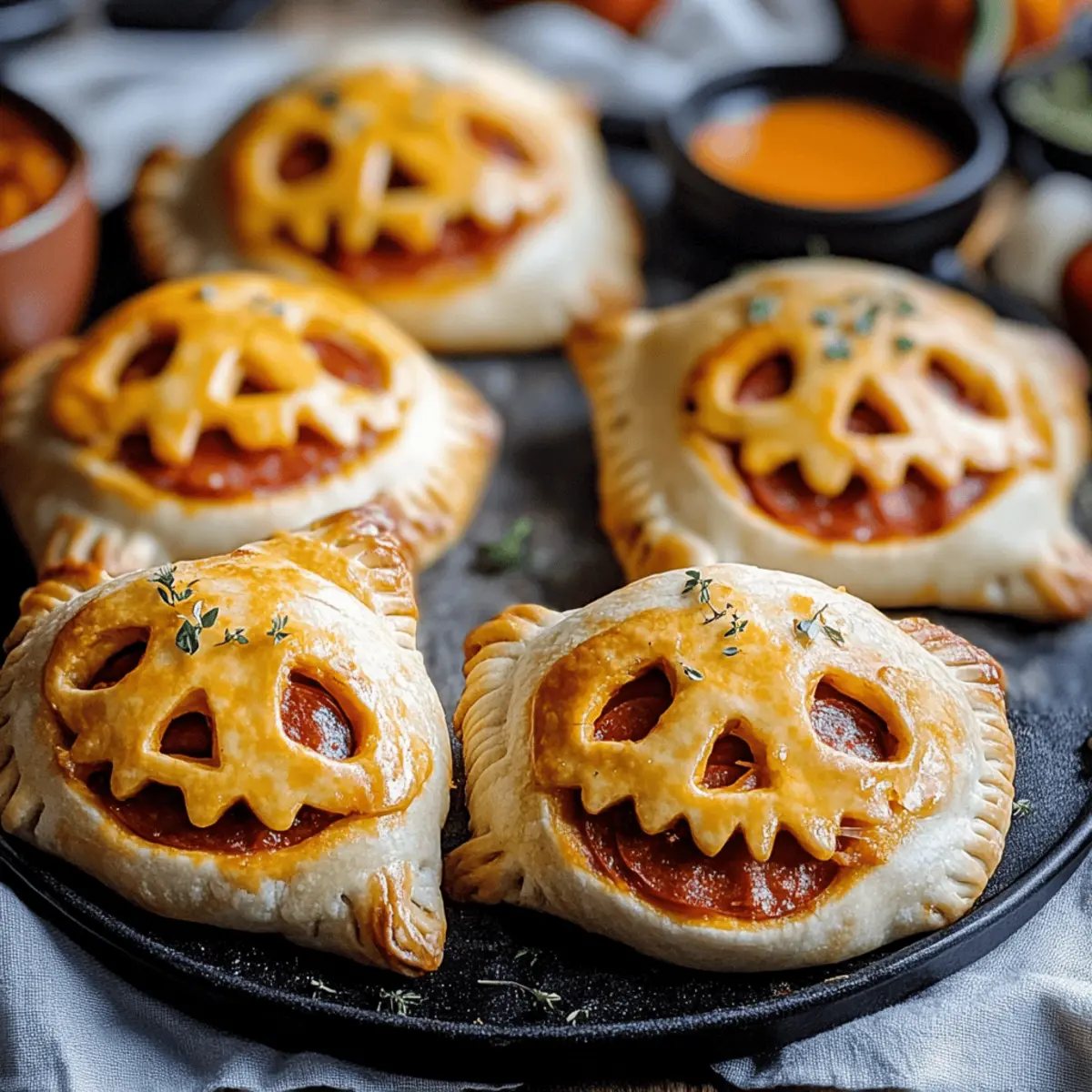 Serving Suggestions: Pair your Jack-O’-Lantern Calzones with a side of warm pizza sauce for dipping. It elevates flavor and makes the meal more interactive!