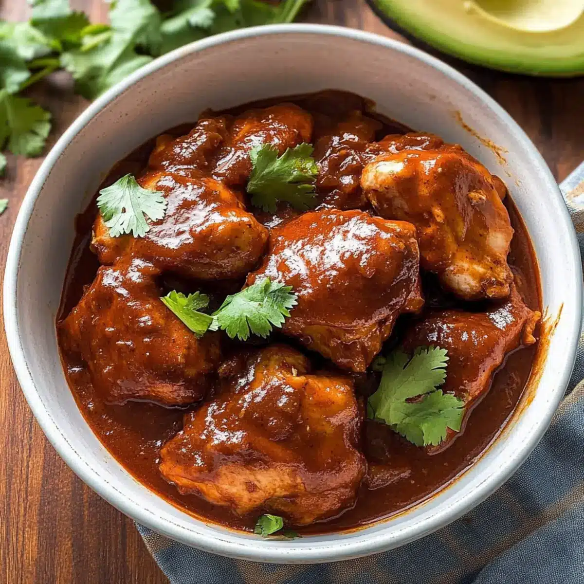 After simmering, remove the bay leaves and check the seasoning, adjusting with more salt if needed. Serve the Mexican Chicken Adobo hot, garnished with freshly chopped cilantro for brightness. Pair with warm tortillas or avocado slices on the side for a comforting meal that your family will love.