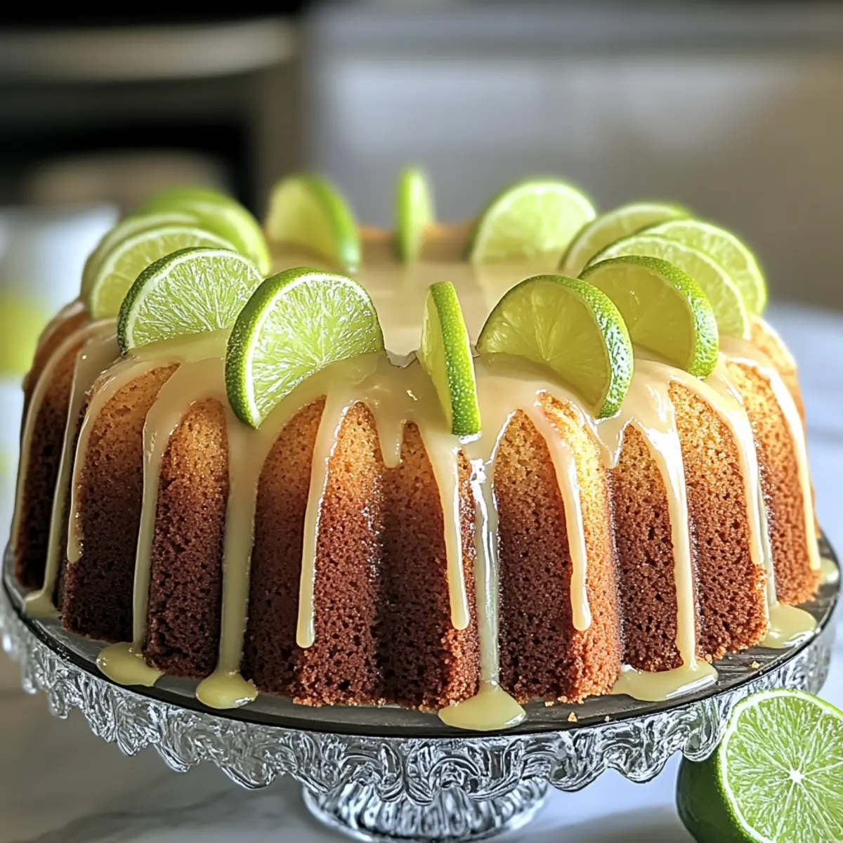 - Make the glaze by whisking powdered sugar with key lime juice and drizzle over the cake before serving.