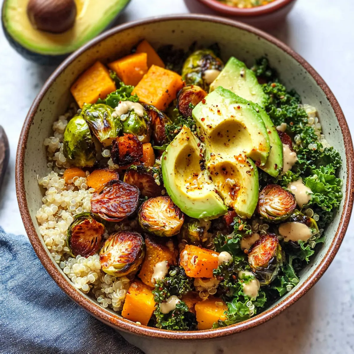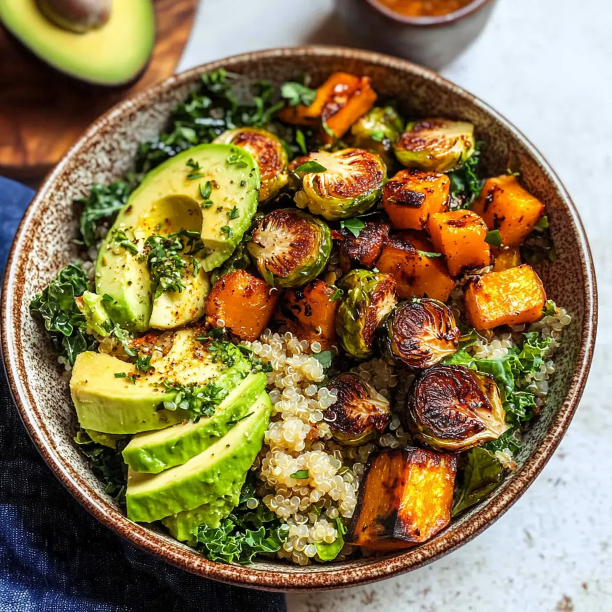 Quinoa Power Bowls with Maple Chipotle Brussels Delight
