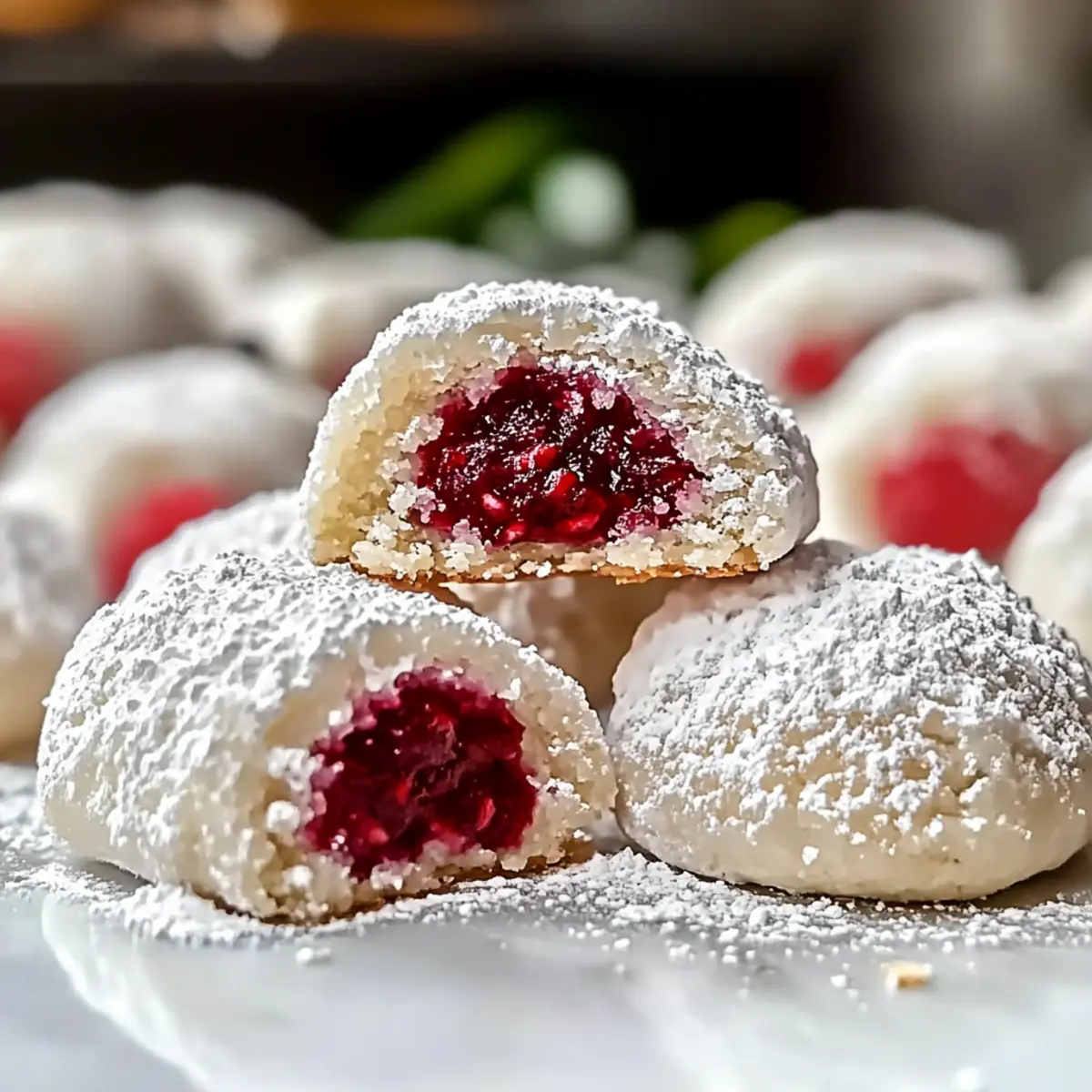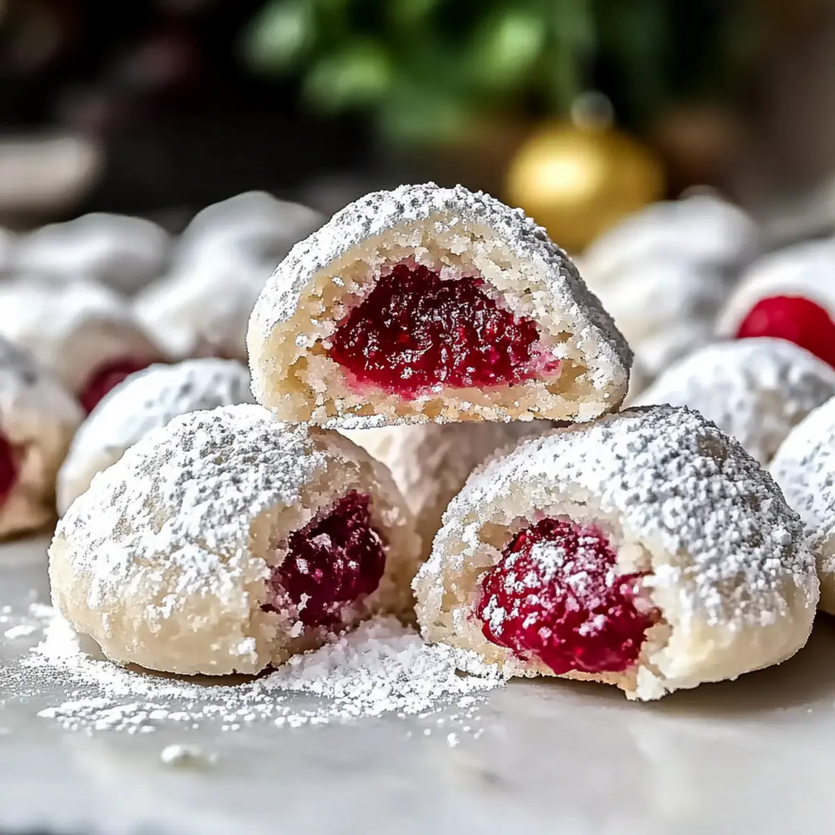 Raspberry Almond Snowball Cookies - A Sweet Holiday Surprise
