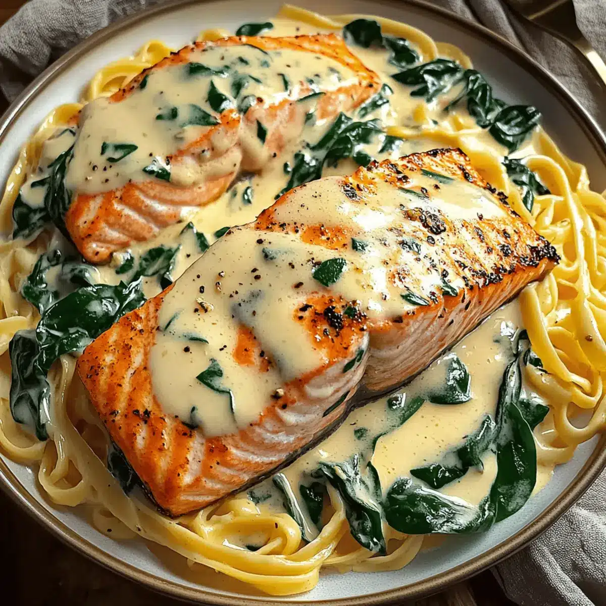 Elevated Flavor: The creamy garlic Parmesan sauce enhances the salmon’s natural richness, while fresh spinach adds a nutritious touch you’ll love.