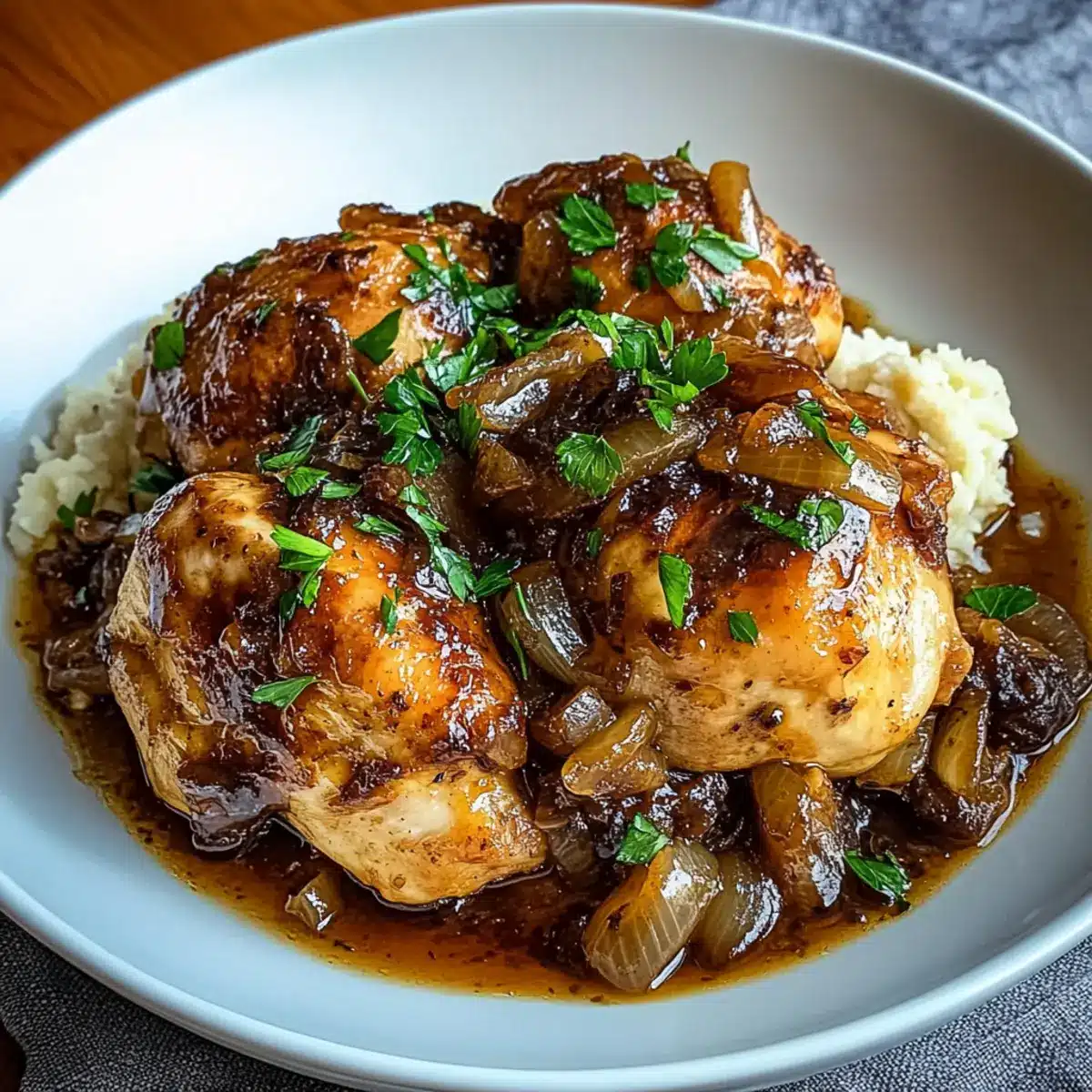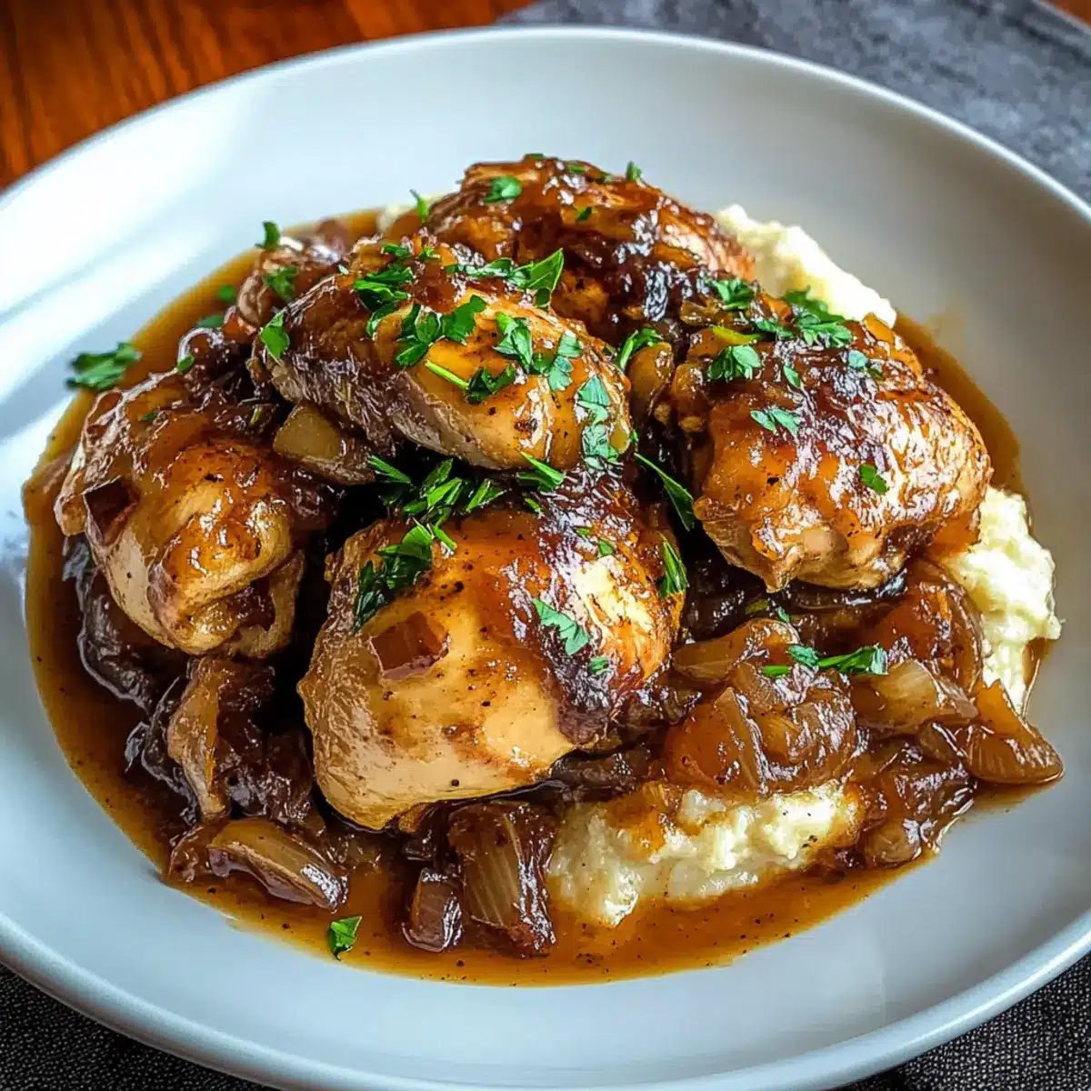 Preparing your Savory Slow-Cooked Crockpot Chicken ahead of time is a fantastic way to save precious minutes during busy weeknights! You can season and sear the chicken and refrigerate it for up to 24 hours before layering it in the crockpot. Additionally, you can chop the onions and mince the garlic in advance, storing them in an airtight container to maintain freshness. When you’re ready to cook, simply layer the onions and garlic in the crockpot, add the seared chicken, and pour the sauce over it. Cook as directed for tender, flavorful results that are just as delicious as if you made it fresh that day! Enjoy stress-free meal planning with this delightful dish!