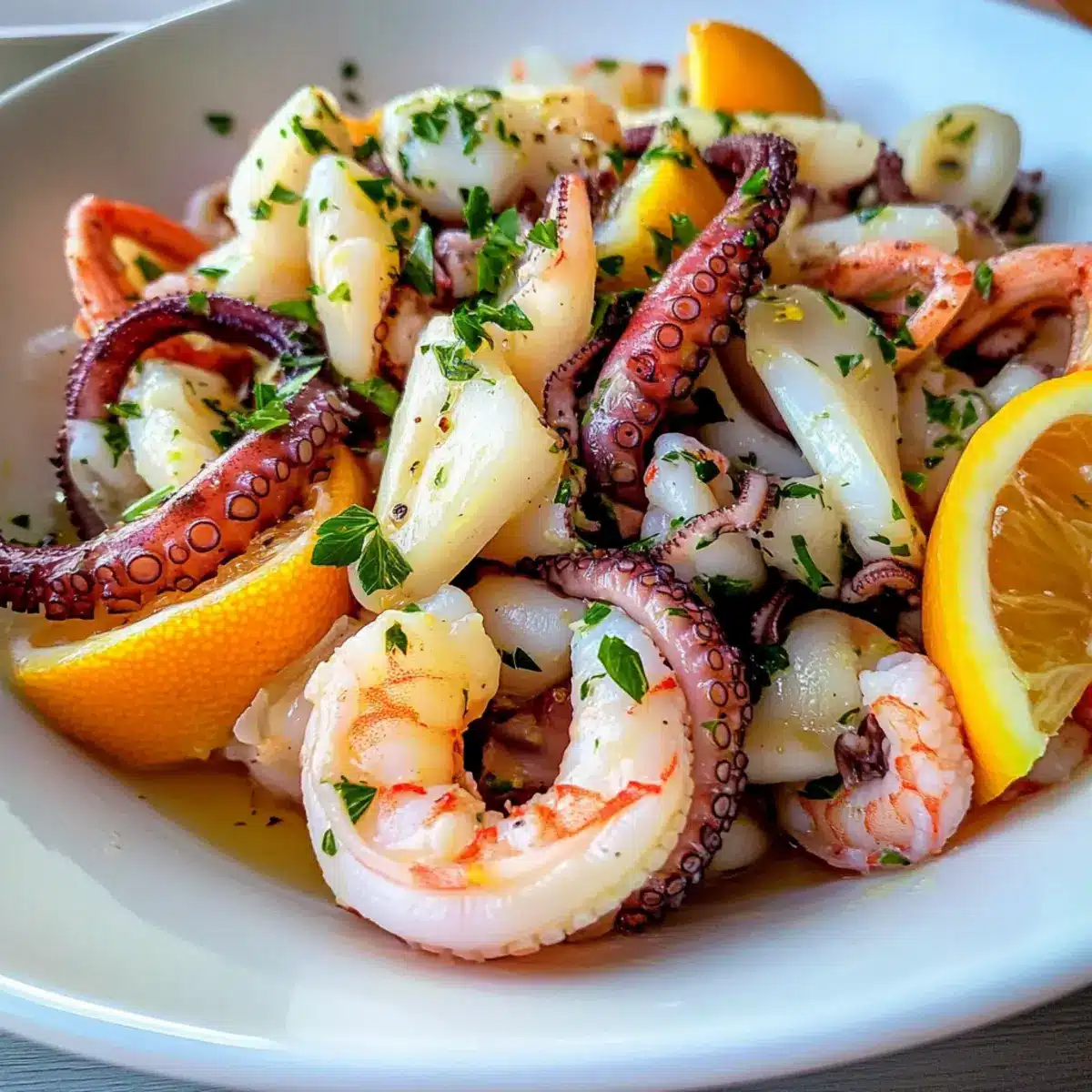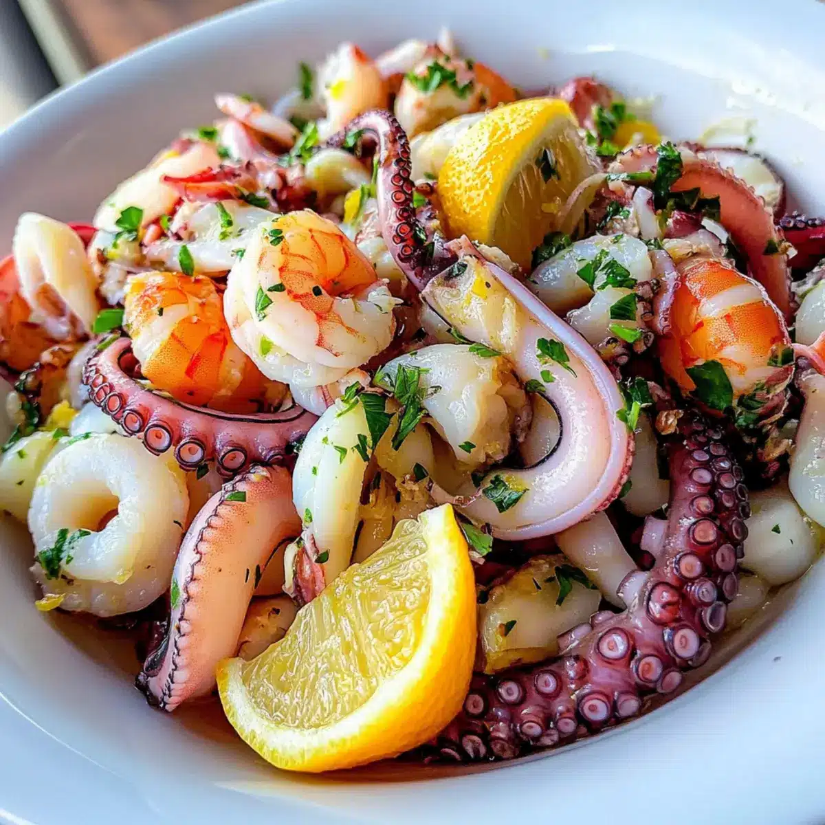 Vibrant Flavors: This Italian Seafood Salad bursts with fresh, tangy flavors, thanks to the delightful combination of citrus and the sea’s bounty.