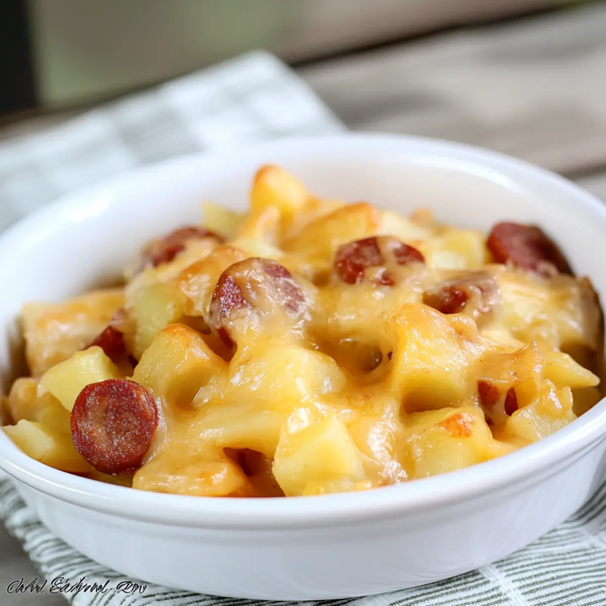 Comforting and Hearty: This casserole offers a lovely blend of flavors, combining savory kielbasa and creamy cheddar cheese with tender potatoes.