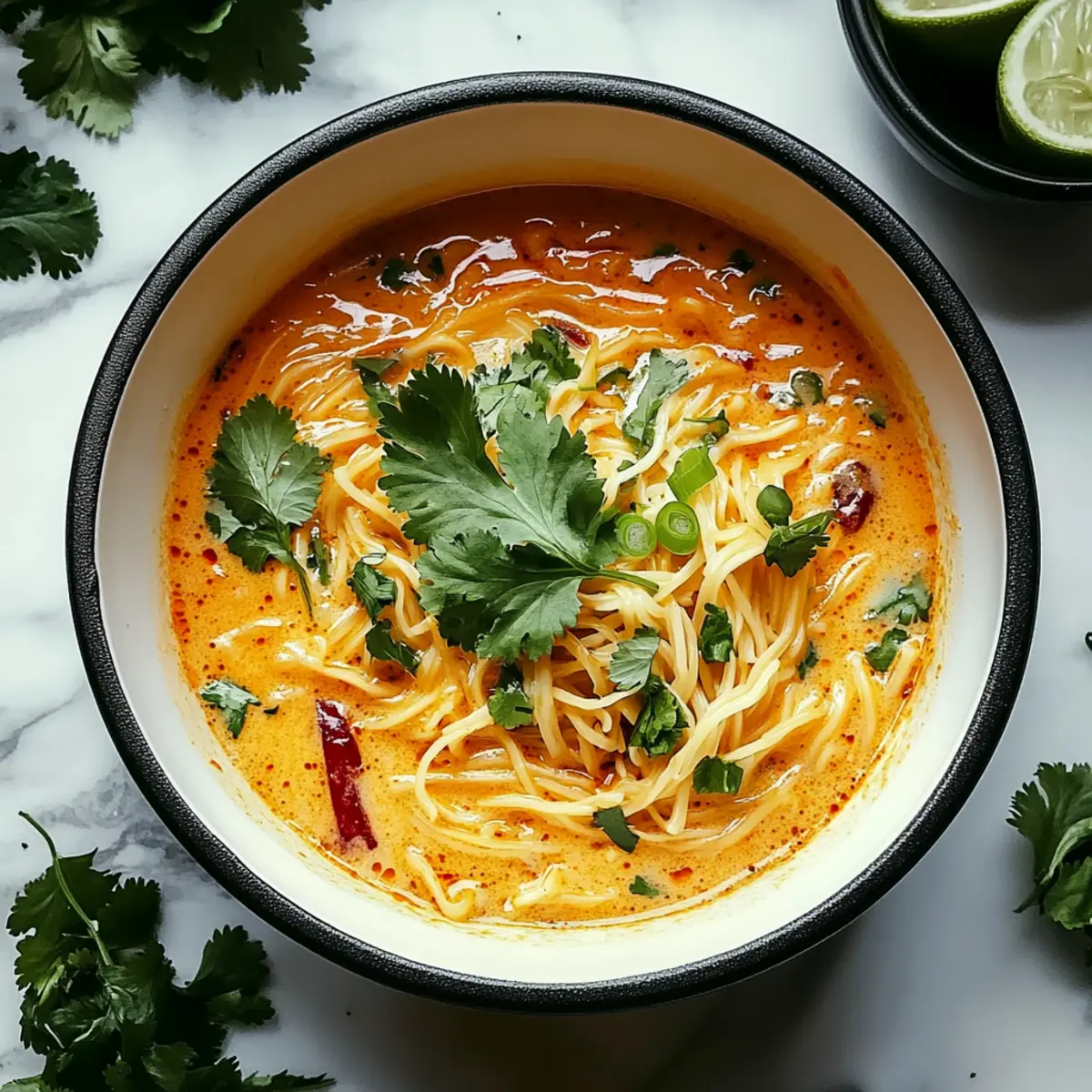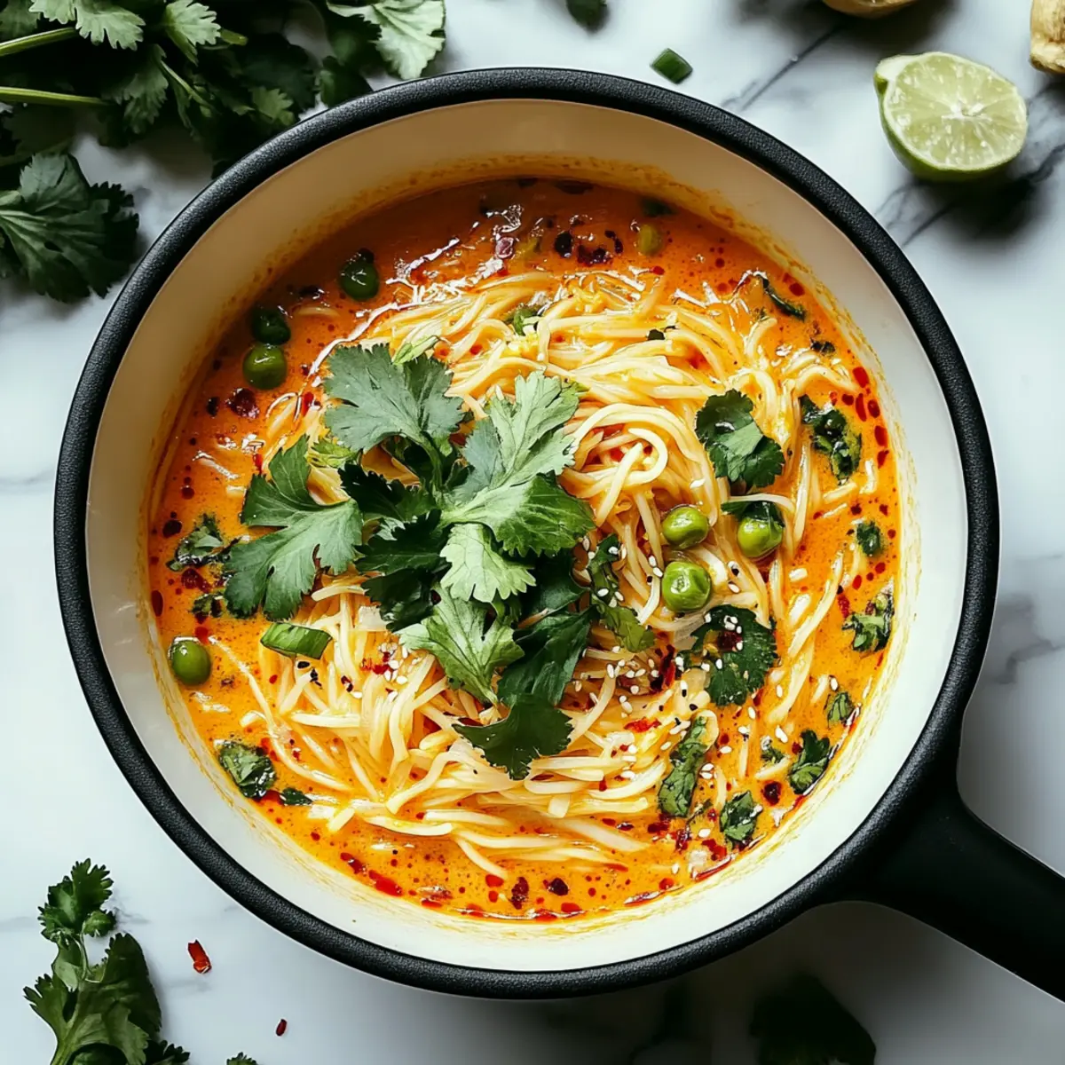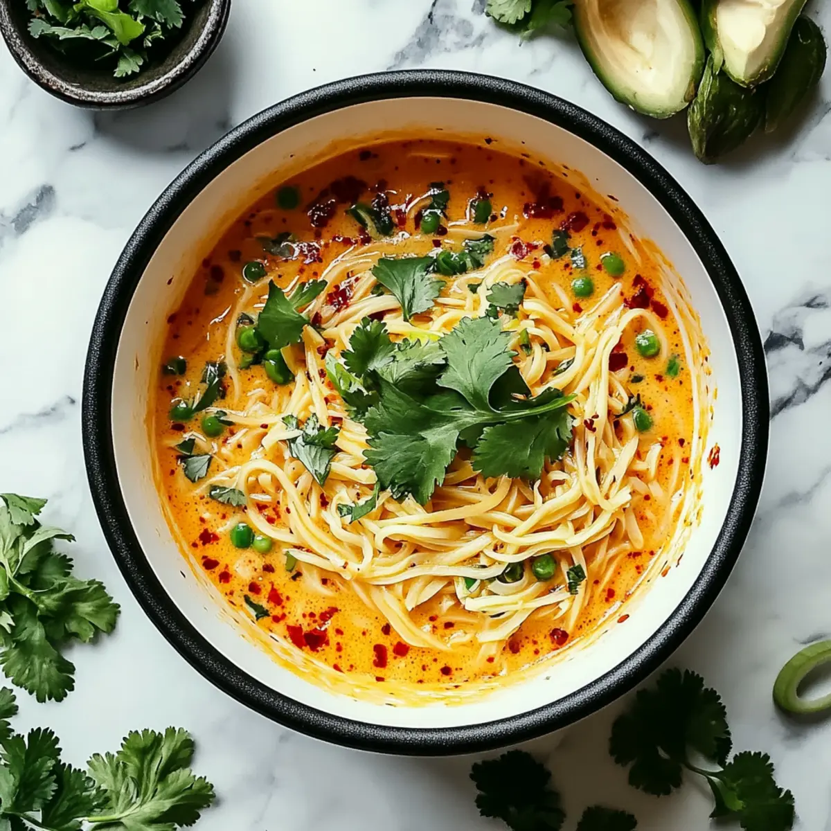 These Spicy Coconut Noodles are a great option for meal prep aficionados! You can sauté the garlic, ginger, and curry paste, then store this aromatic mixture in an airtight container in the refrigerator for up to 3 days. The rice noodles can also be cooked and refrigerated for up to 24 hours; just toss them with a splash of oil to prevent sticking. When you’re ready to serve, simply reheat the sautéed base in a pan, stir in the coconut milk, broth, and cooked noodles, then finish with lime juice and fresh toppings right before serving. This way, you’ll enjoy the same delicious flavors with minimal effort on busy weeknights!