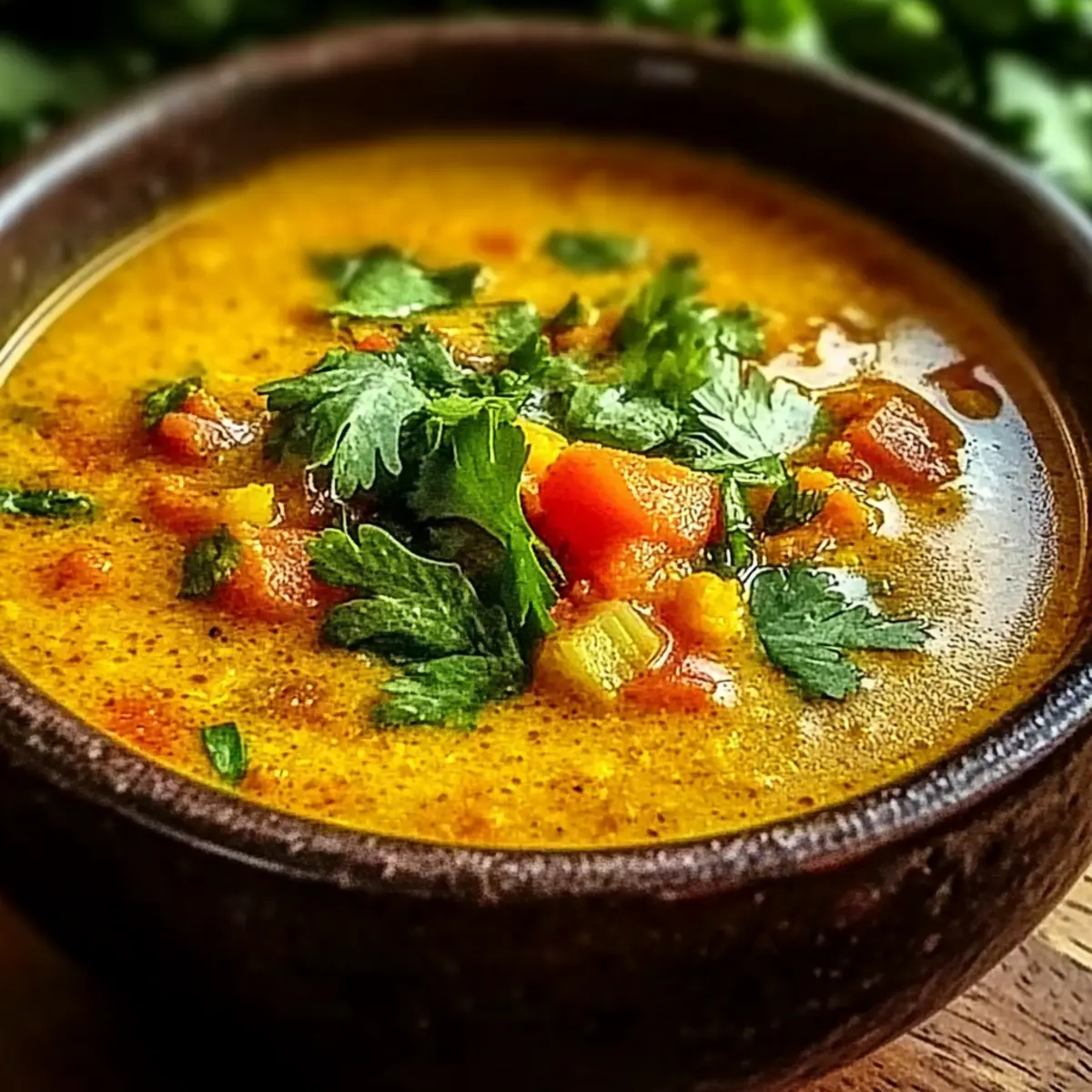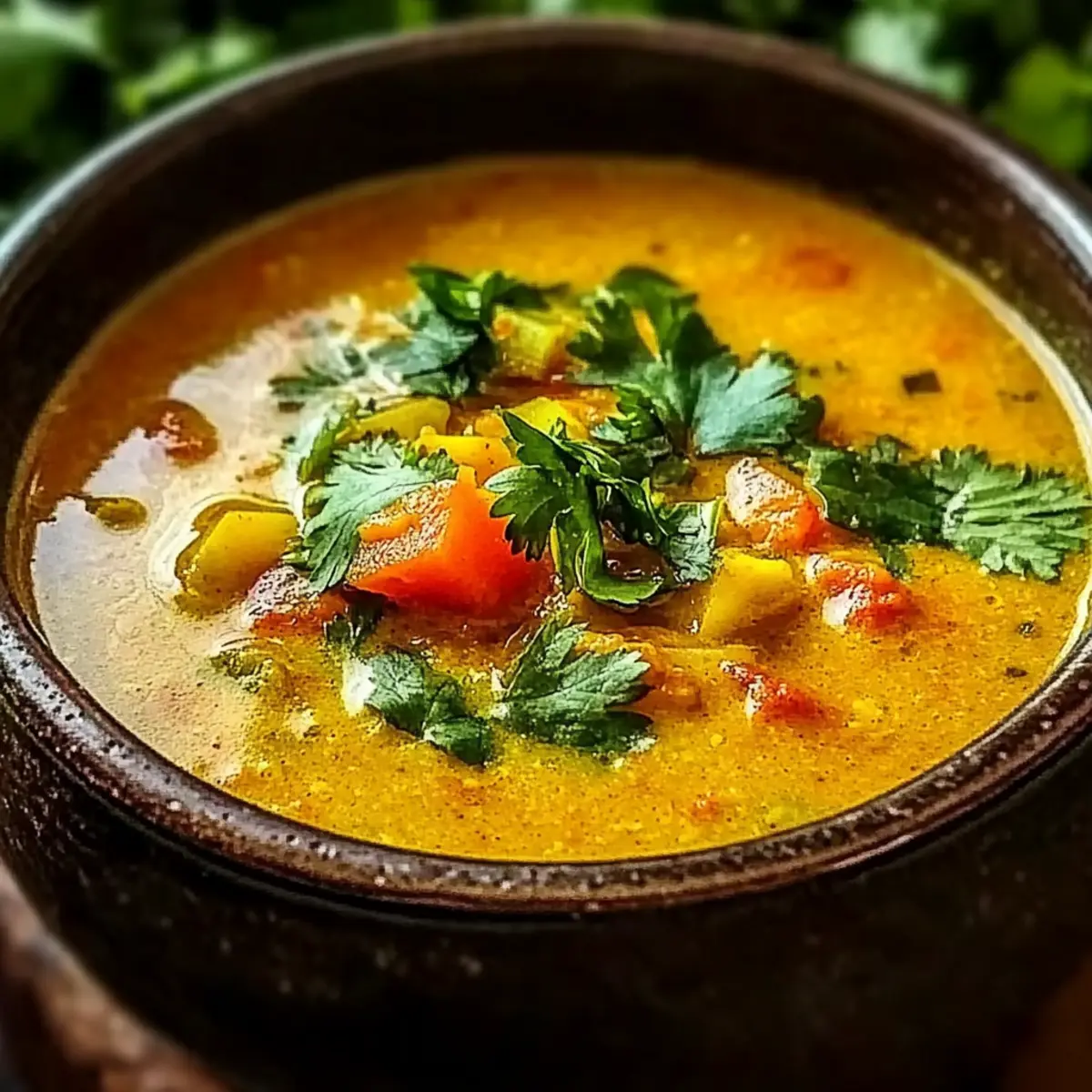 To finish, ladle the soup into warm bowls and garnish with freshly chopped cilantro for a burst of freshness. Serve your Spicy Indian Mulligatawny Soup hot, pairing it with crusty bread or naan to soak up the delightful flavors. Enjoy the warmth and comfort that each spoonful brings!