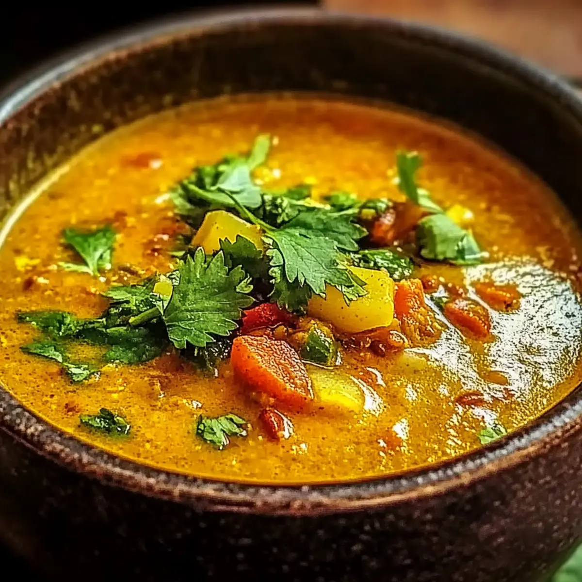- Ladle the soup into bowls, garnish with cilantro, and serve hot.