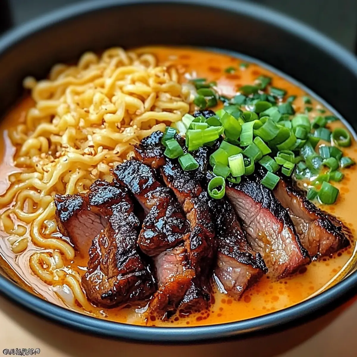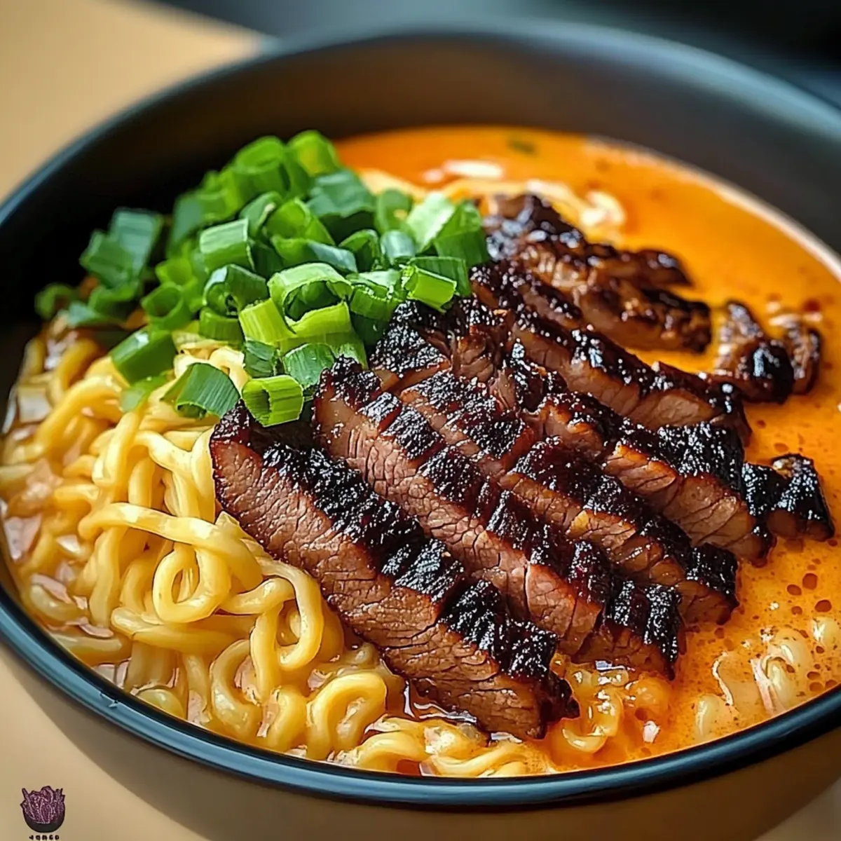 Spicy Korean Ramen with Grilled Beef & Creamy Sauce Bliss