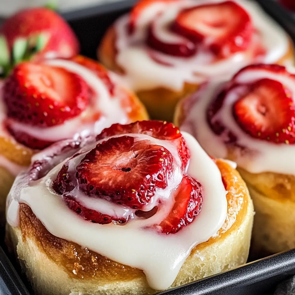 - Top Rolls: Ice the rolls while warm and arrange sliced strawberries on top.
