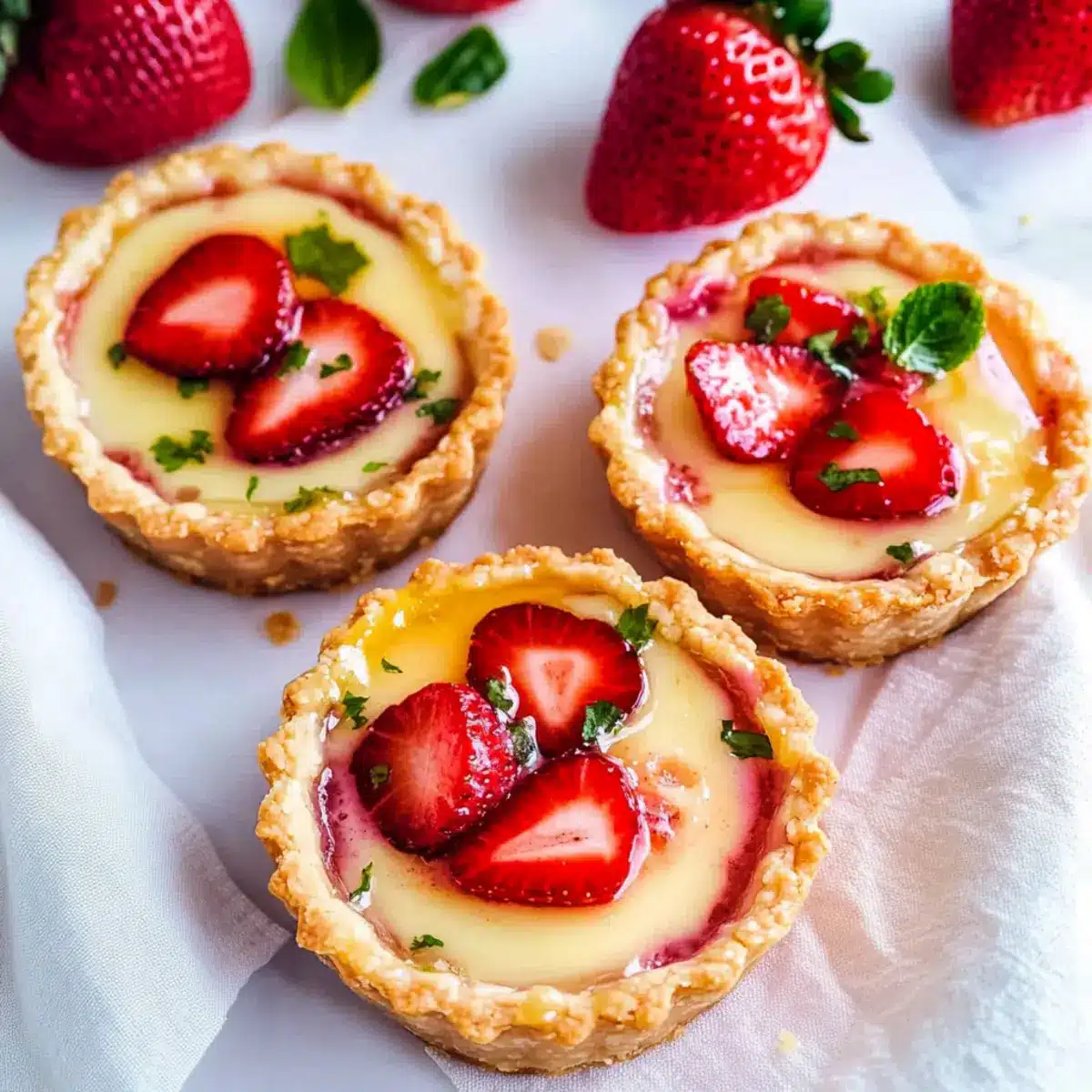 For the best flavor and texture, refrigerate the tarts for at least 1 hour before serving. This allows the custard to fully set and enhances the refreshing taste. When ready to impress your guests, serve chilled, garnished with fresh mint leaves or additional strawberry slices for a delightful touch.
