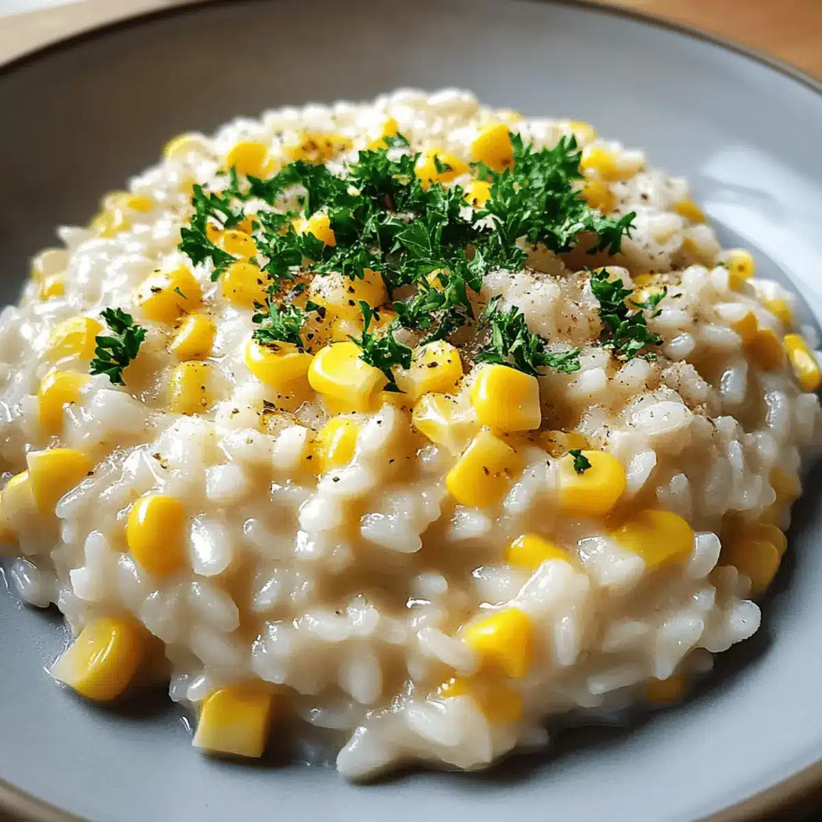 Serve the risotto immediately in shallow bowls, garnished with freshly chopped parsley and, if desired, extra Parmesan cheese. The bright colors and creamy texture create an inviting dish that embodies comfort, making your Sweet Corn Risotto a perfect centerpiece for any meal.