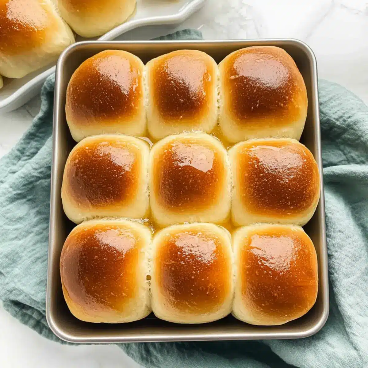 Once baked, immediately brush the top of the rolls with 2 tablespoons of melted butter to give them a glossy finish and rich flavor. Allow your Sweet Hawaiian Bread Rolls to cool for 5-7 minutes in the pan before serving, making them the perfect warm treat for any meal.