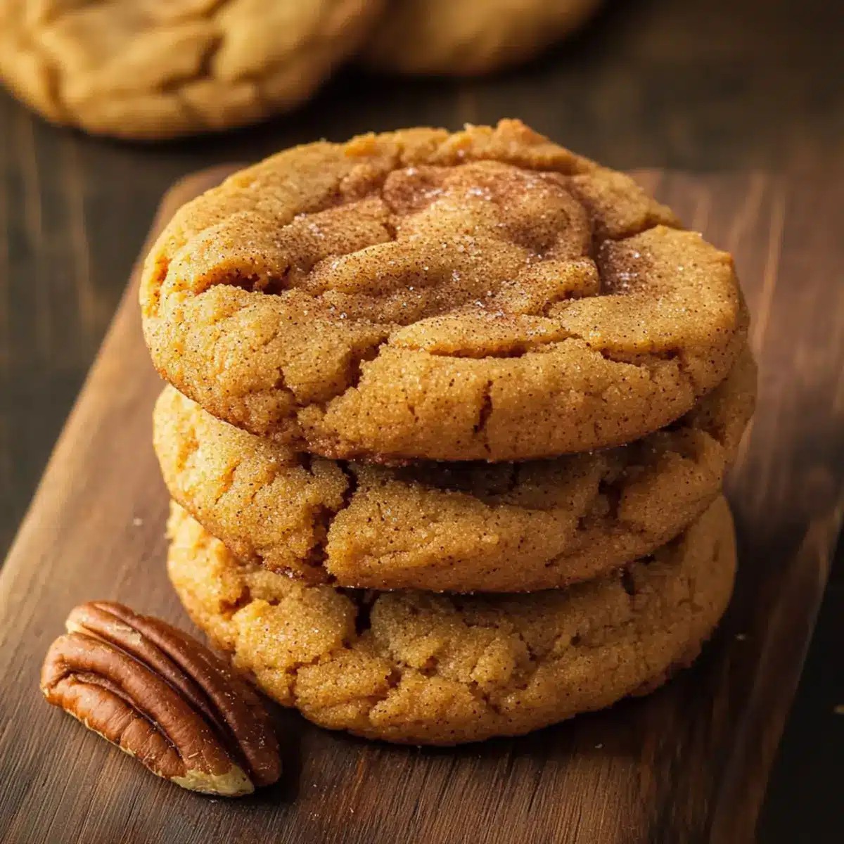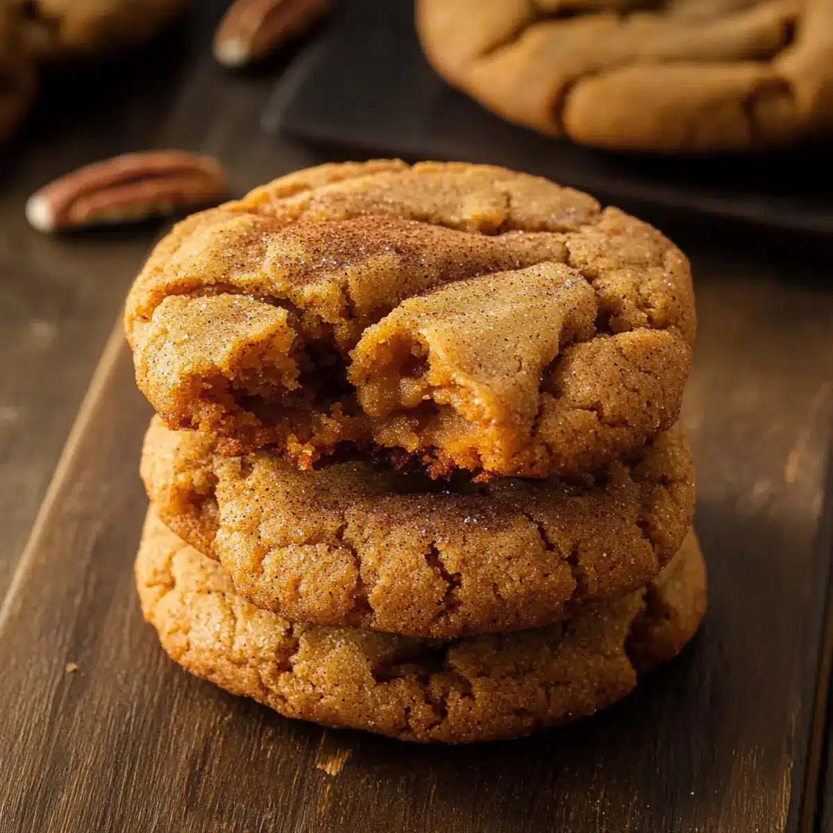 Preheat your oven to 350°F and line two baking sheets with parchment paper. Scoop tablespoon-sized portions of the dough onto the prepared sheets, spacing them about 2 inches apart. If desired, top each cookie with a pecan half or a sprinkle of cinnamon sugar for added texture and flavor. Bake for 10–12 minutes until the edges are golden and the centers remain slightly soft.